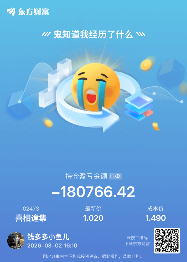 温馨提示: 1.根据《证券法》规定,禁止编造、传播虚假信息或者误导性信息,扰乱证券市场;2.用户在本社区发表的所有资料、言论等仅代表个人观点,与本网站立场无关,不对您构成任何投资建议。用户应基于自己的独立判断,自行决定证券投资并承担相应风险。《东方财富社区管理规定》