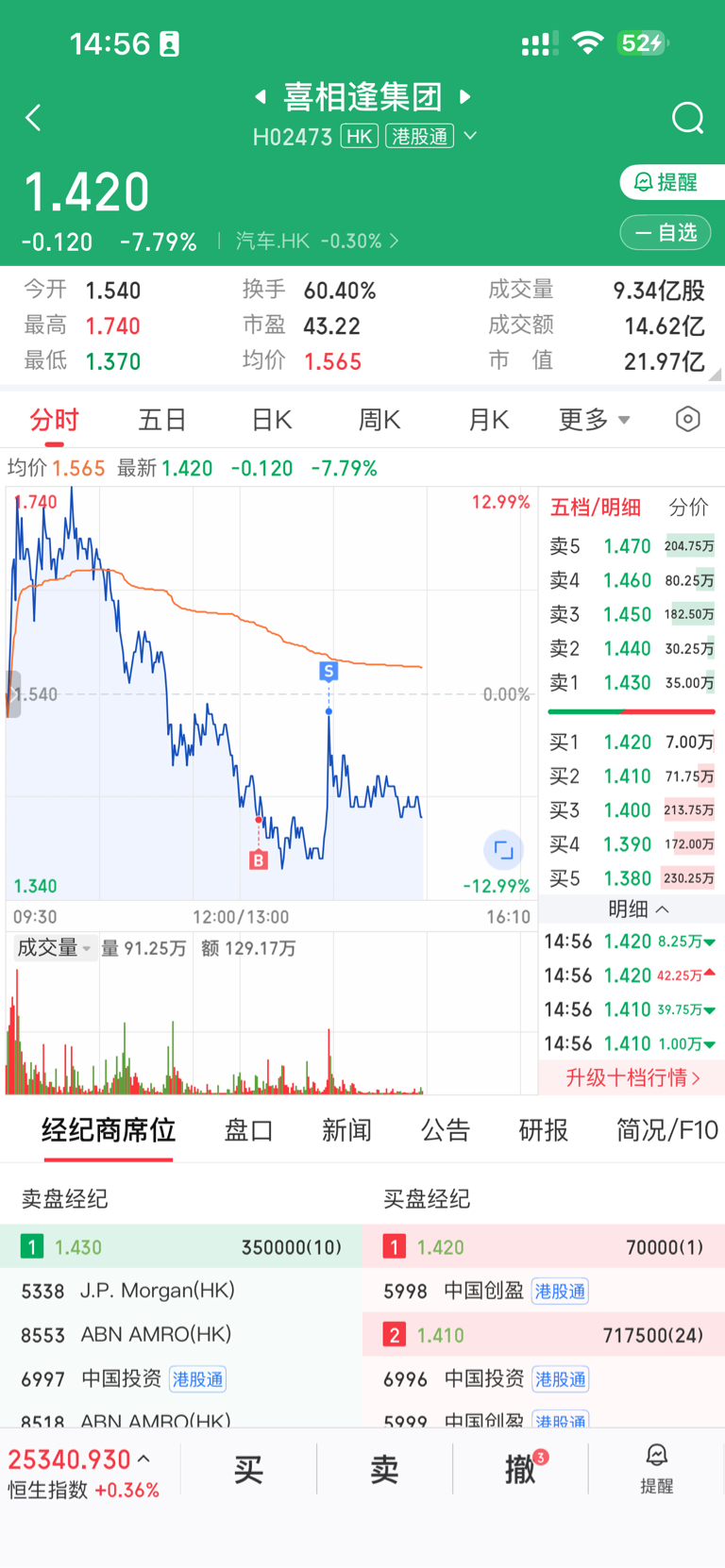 $喜相逢集团(HK|02473)$ 不好意思,被我砸盘了