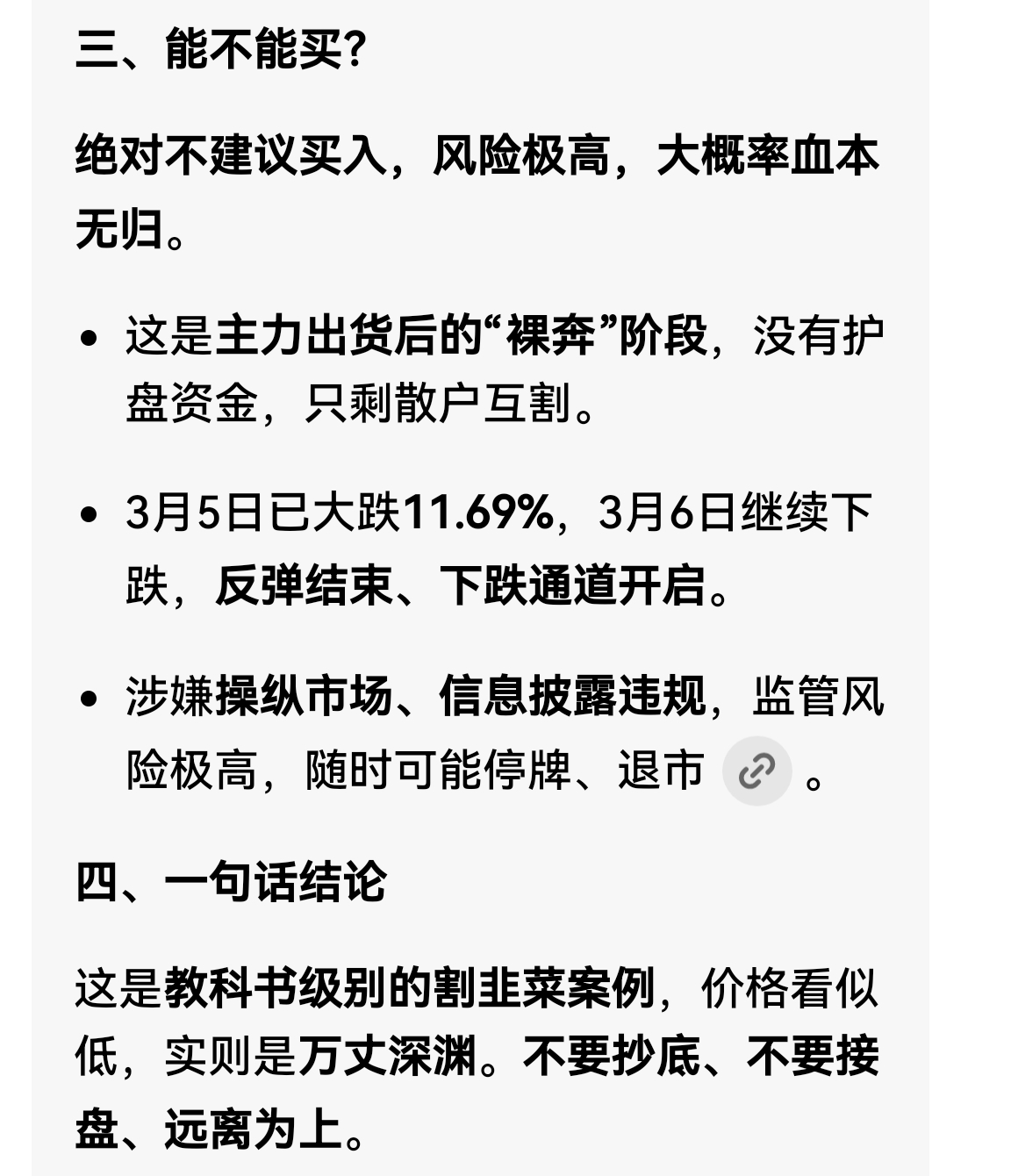 温馨提示: 1.根据《证券法》规定,禁止编造、传播虚假信息或者误导性信息,扰乱证券市场;2.用户在本社区发表的所有资料、言论等仅代表个人观点,与本网站立场无关,不对您构成任何投资建议。用户应基于自己的独立判断,自行决定证券投资并承担相应风险。《东方财富社区管理规定》