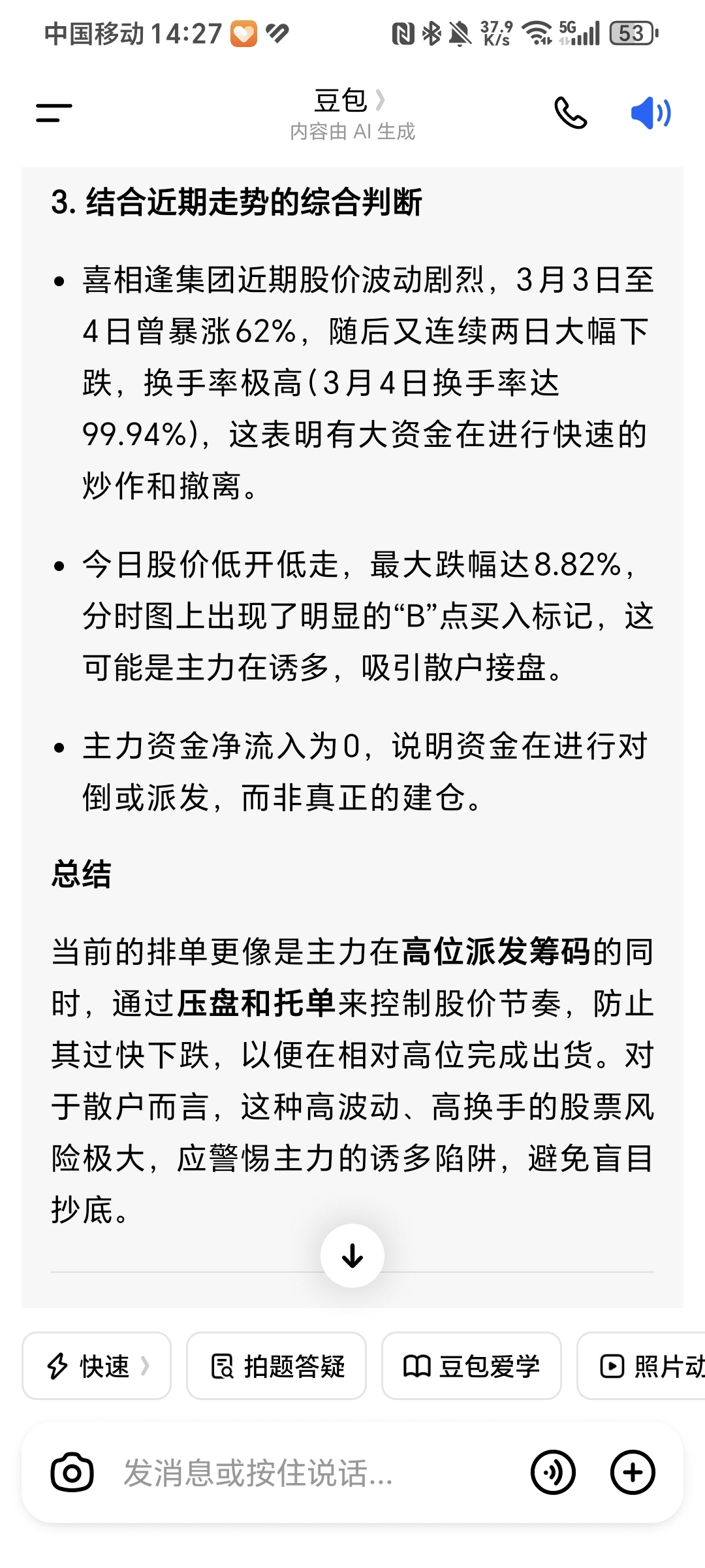 温馨提示: 1.根据《证券法》规定,禁止编造、传播虚假信息或者误导性信息,扰乱证券市场;2.用户在本社区发表的所有资料、言论等仅代表个人观点,与本网站立场无关,不对您构成任何投资建议。用户应基于自己的独立判断,自行决定证券投资并承担相应风险。《东方财富社区管理规定》