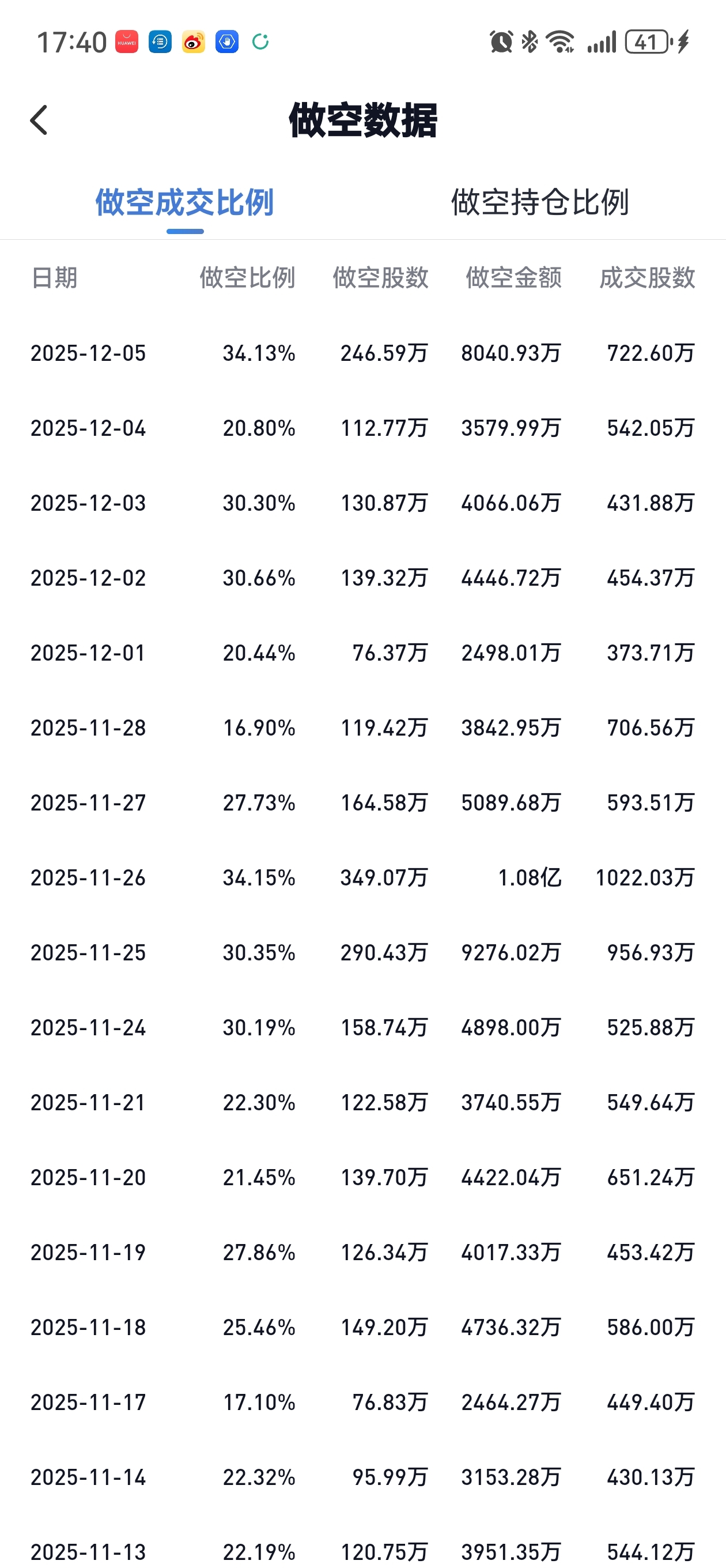 空仓比例占到总股本的8.7%, 12月5号做空的比例差不多达到40%,