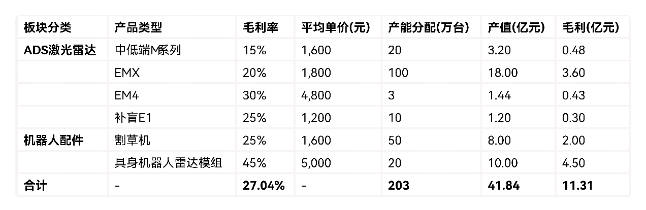 我们不仿通过几个板块不同的比例大概就可以算出明年的产值及其毛利水平