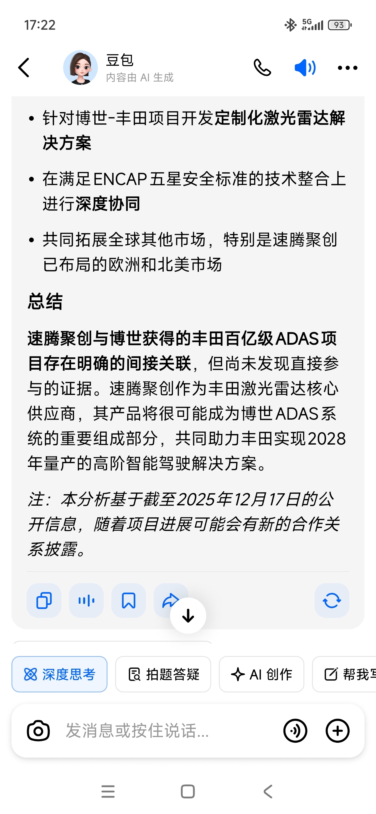 $速腾聚创(HK|02498)$ 记者获悉,博世于近日获得丰田全球百亿级ADAS 项目订单。根据合作规划,博世将基于高通芯片为丰田提供系统解决方案,全面满足2026 版ENCAP 五星安全标准。据悉,该订单覆盖北美、欧盟、英国及日本等全球核心市场,是目前全球智驾领域规模最大的单笔项目,拟于2028年量产落地。