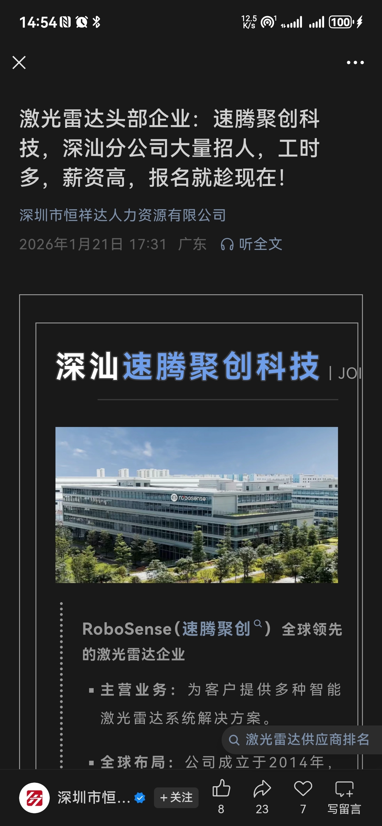 速腾聚创开双班了,说明一季度又爆单了