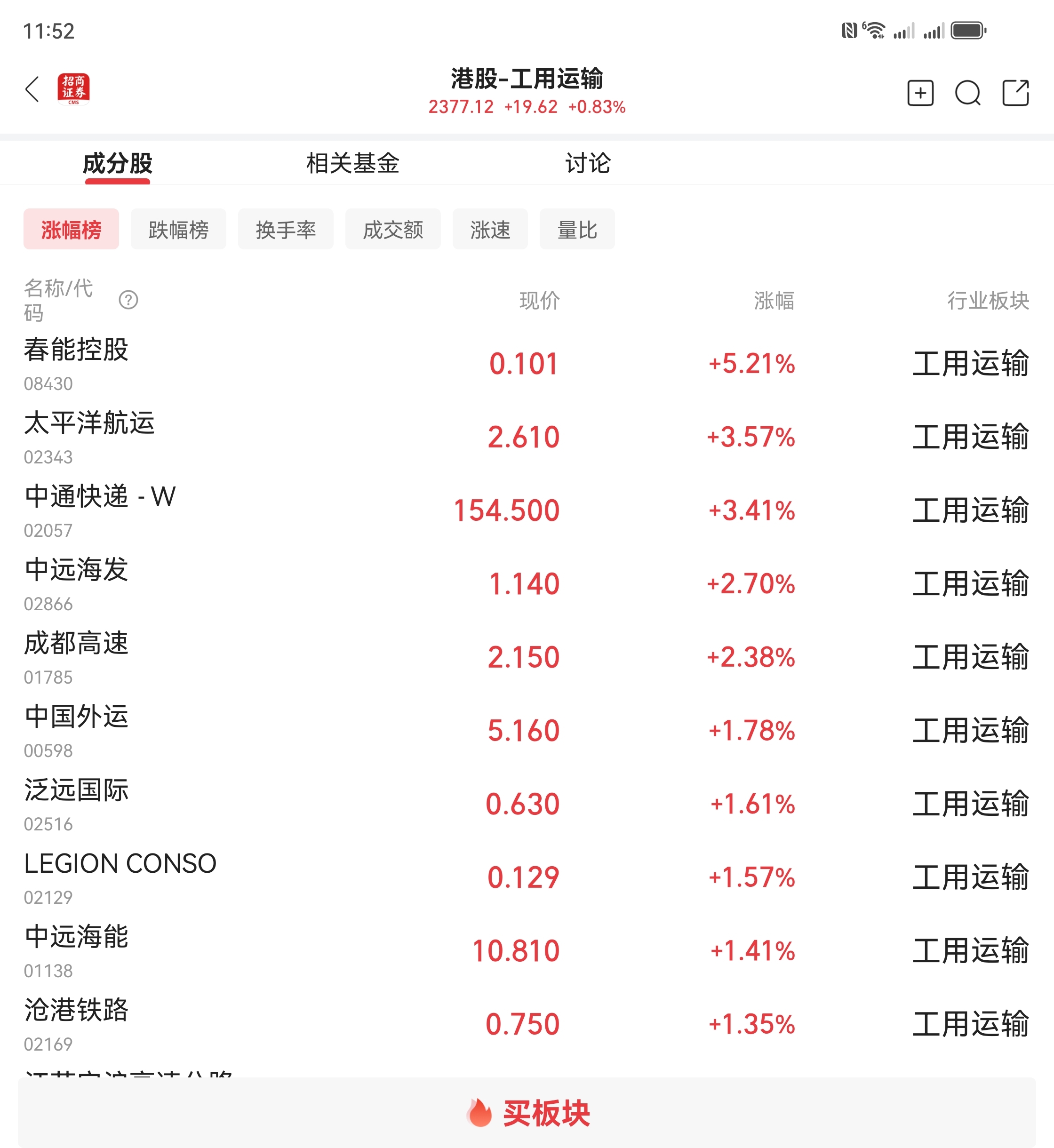 $德翔海运(HK|02510)$ 运输板块都红通通,好意思跌。