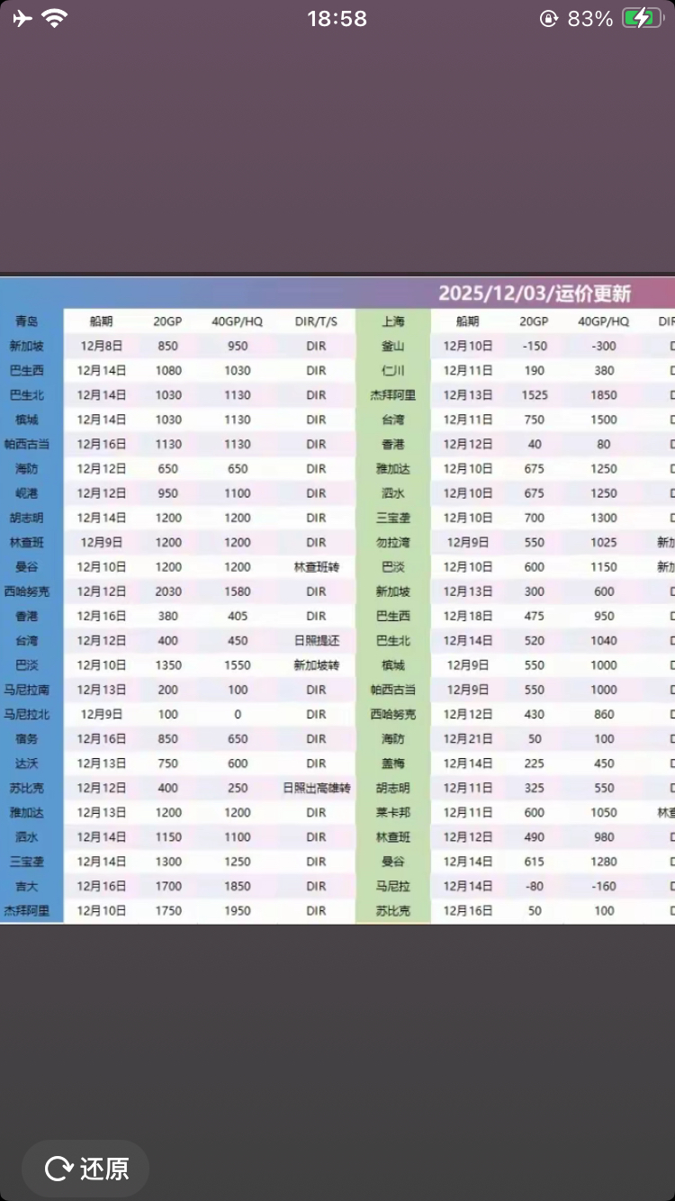 九月份和十二月份东南亚运价对比