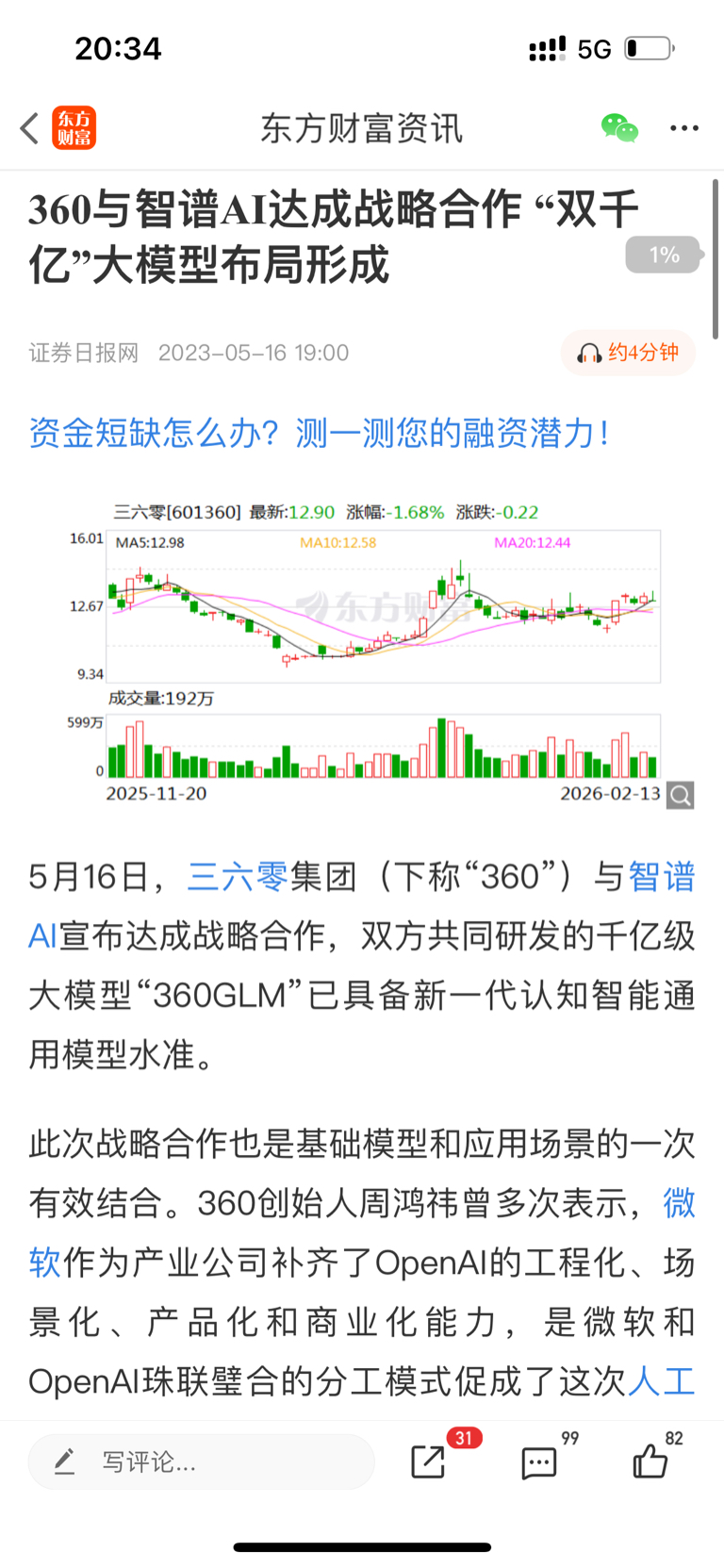 三六零是不是节后也有机会呢?正宗的智谱AI概念股