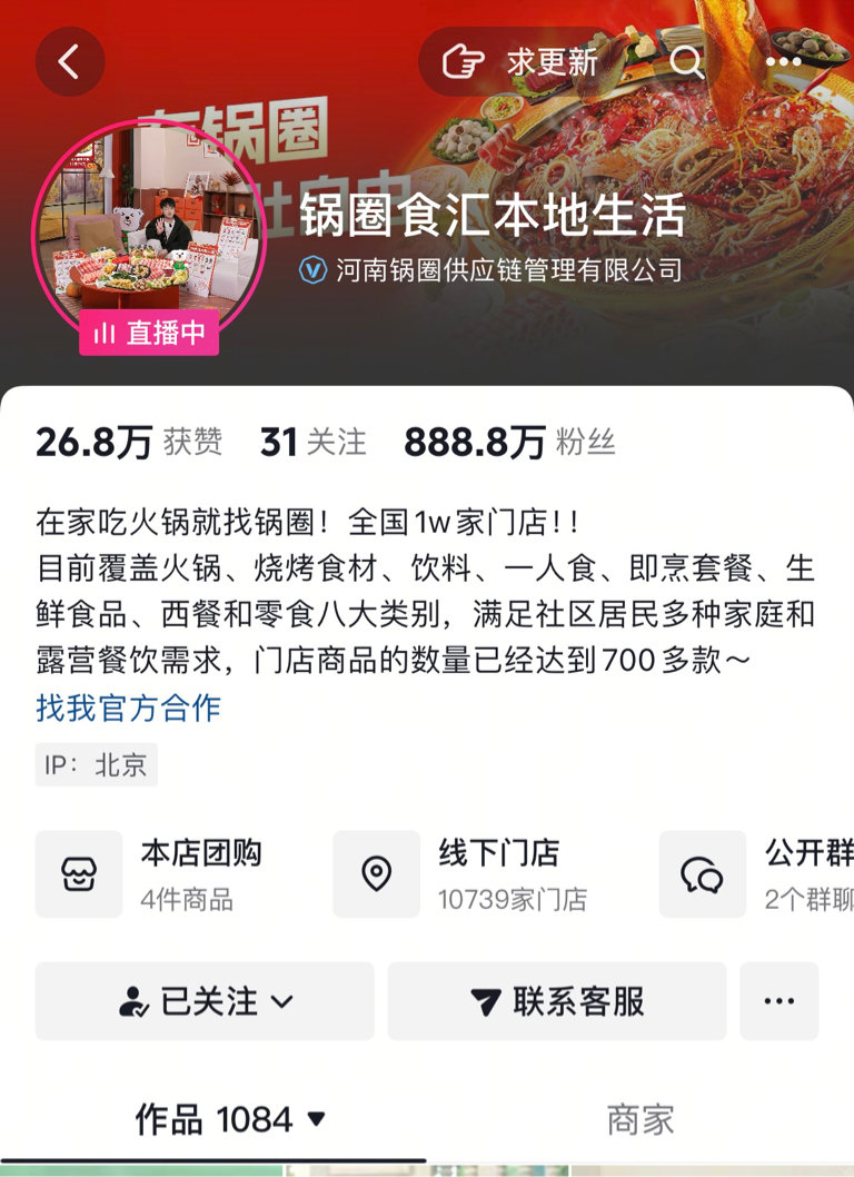锅圈抖音粉丝到达888.8万,希望所有的股民都能发发发发。