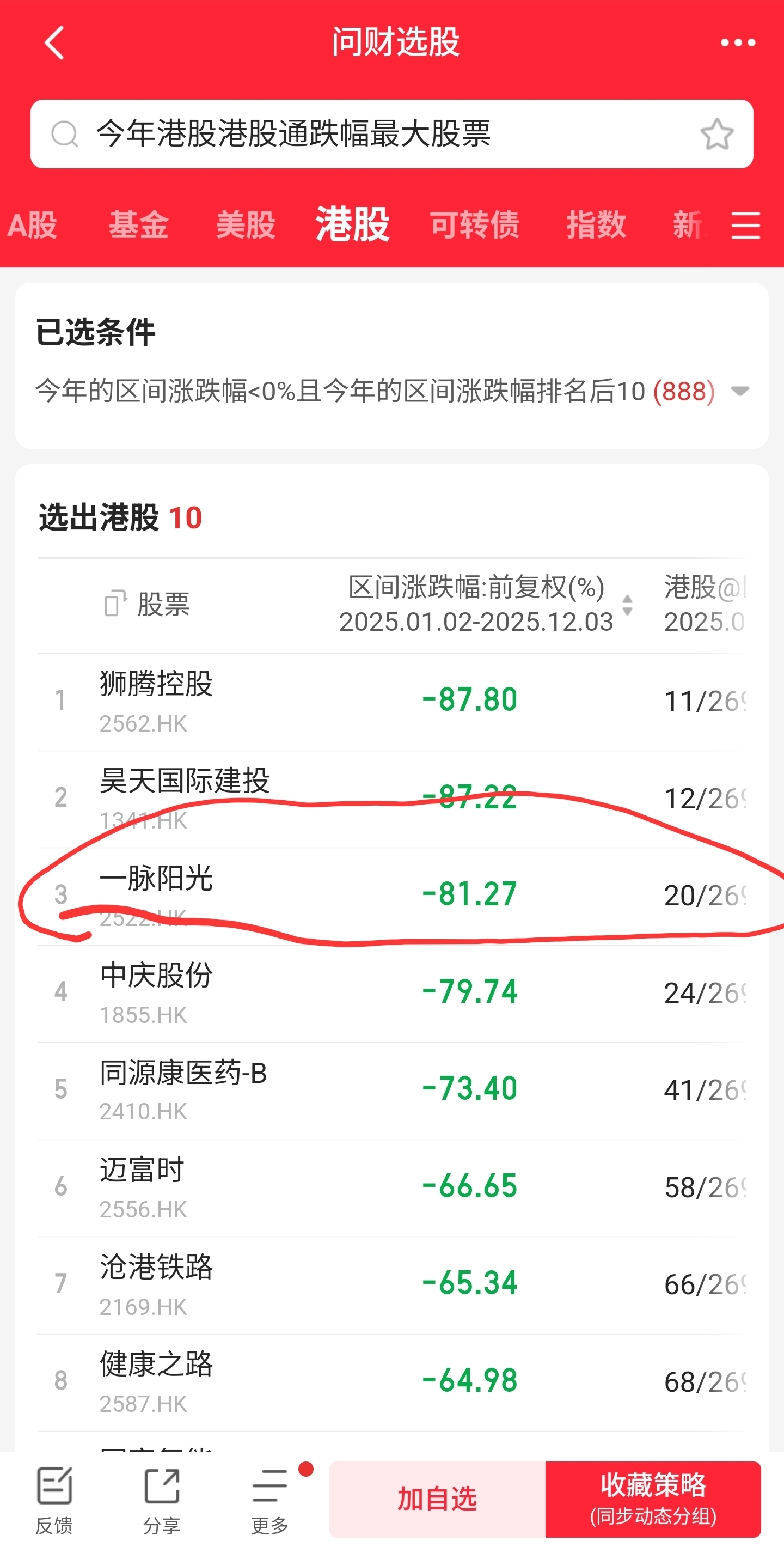 $一脉阳光(HK|02522)$ 年度跌幅排第3