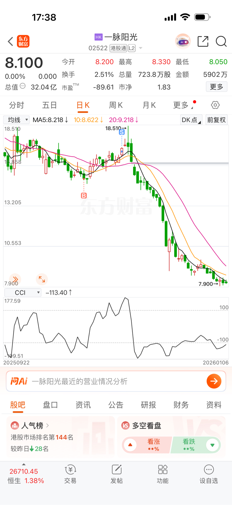 $一脉阳光(HK|02522)$ 没事快到底了,在下来10我全仓进去