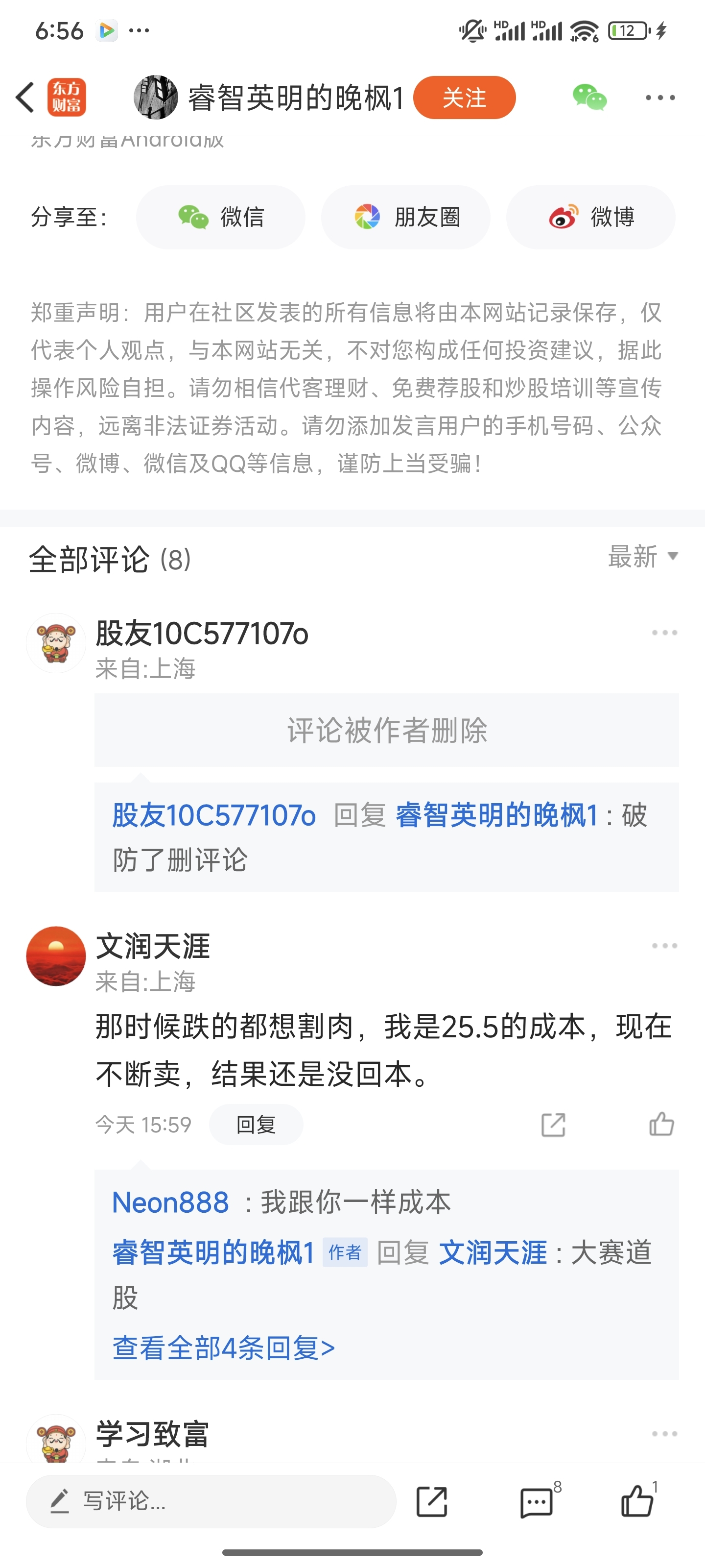 温馨提示: 1.根据《证券法》规定,禁止编造、传播虚假信息或者误导性信息,扰乱证券市场;2.用户在本社区发表的所有资料、言论等仅代表个人观点,与本网站立场无关,不对您构成任何投资建议。用户应基于自己的独立判断,自行决定证券投资并承担相应风险。《东方财富社区管理规定》