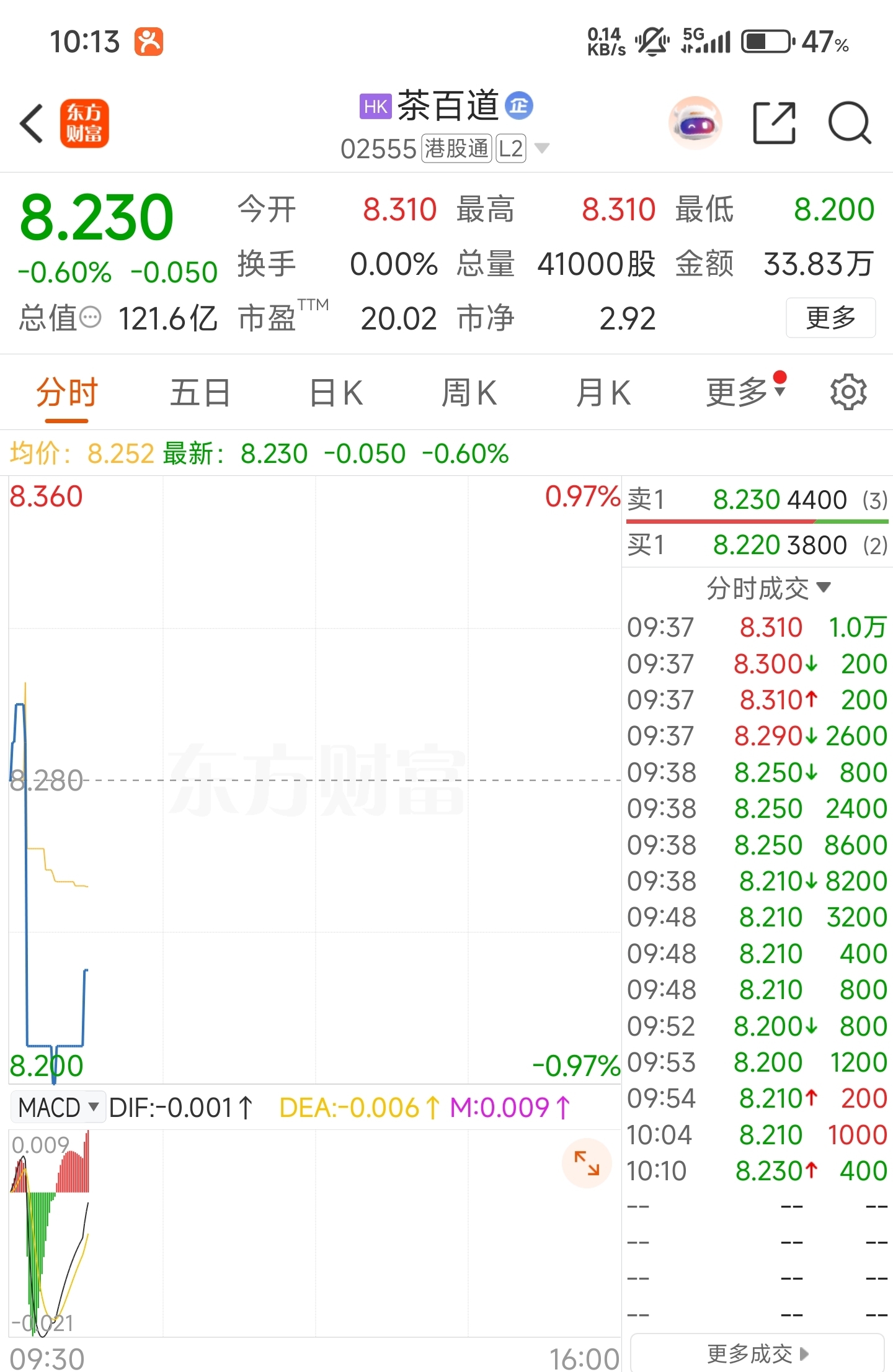$茶百道(HK|02555)$ 这个成交量我也是服了