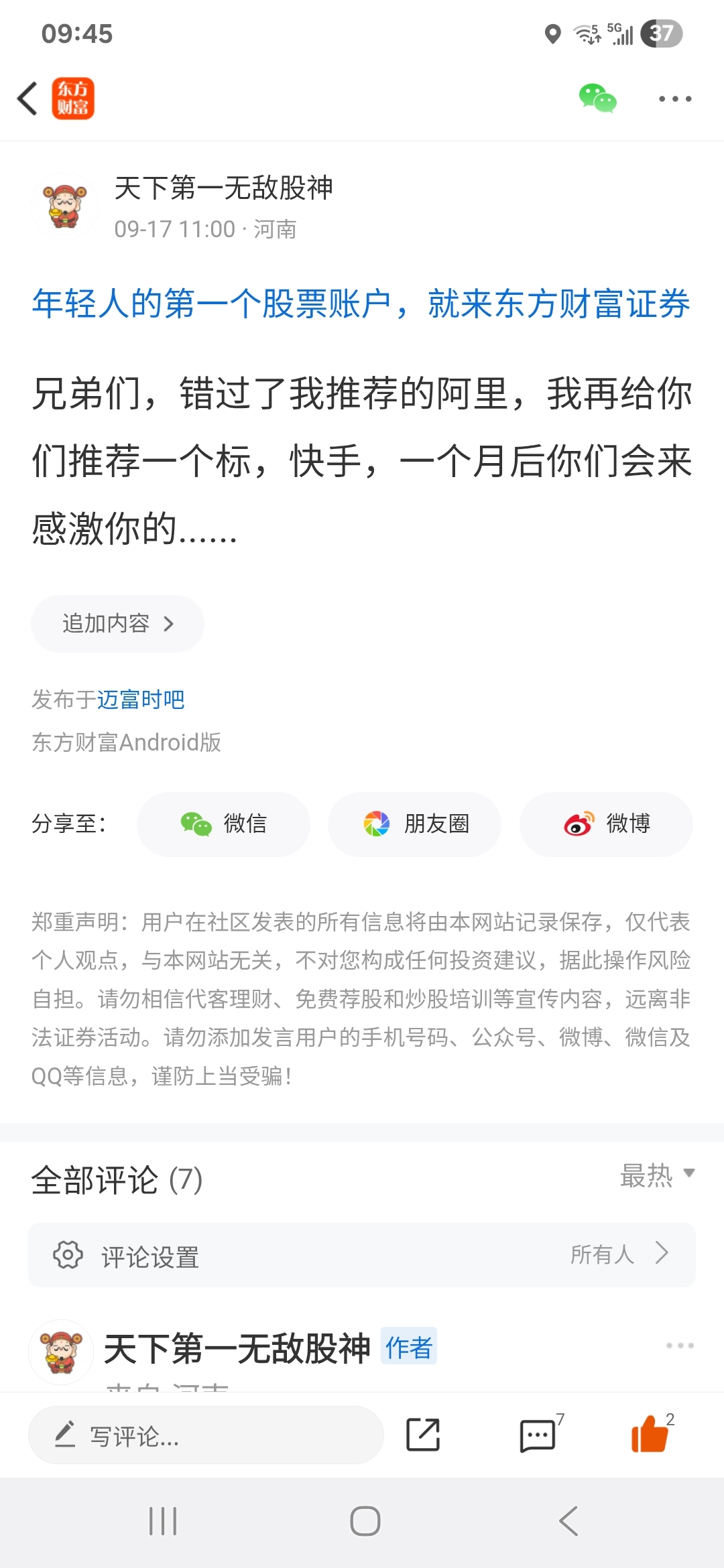 温馨提示: 1.根据《证券法》规定,禁止编造、传播虚假信息或者误导性信息,扰乱证券市场;2.用户在本社区发表的所有资料、言论等仅代表个人观点,与本网站立场无关,不对您构成任何投资建议。用户应基于自己的独立判断,自行决定证券投资并承担相应风险。《东方财富社区管理规定》