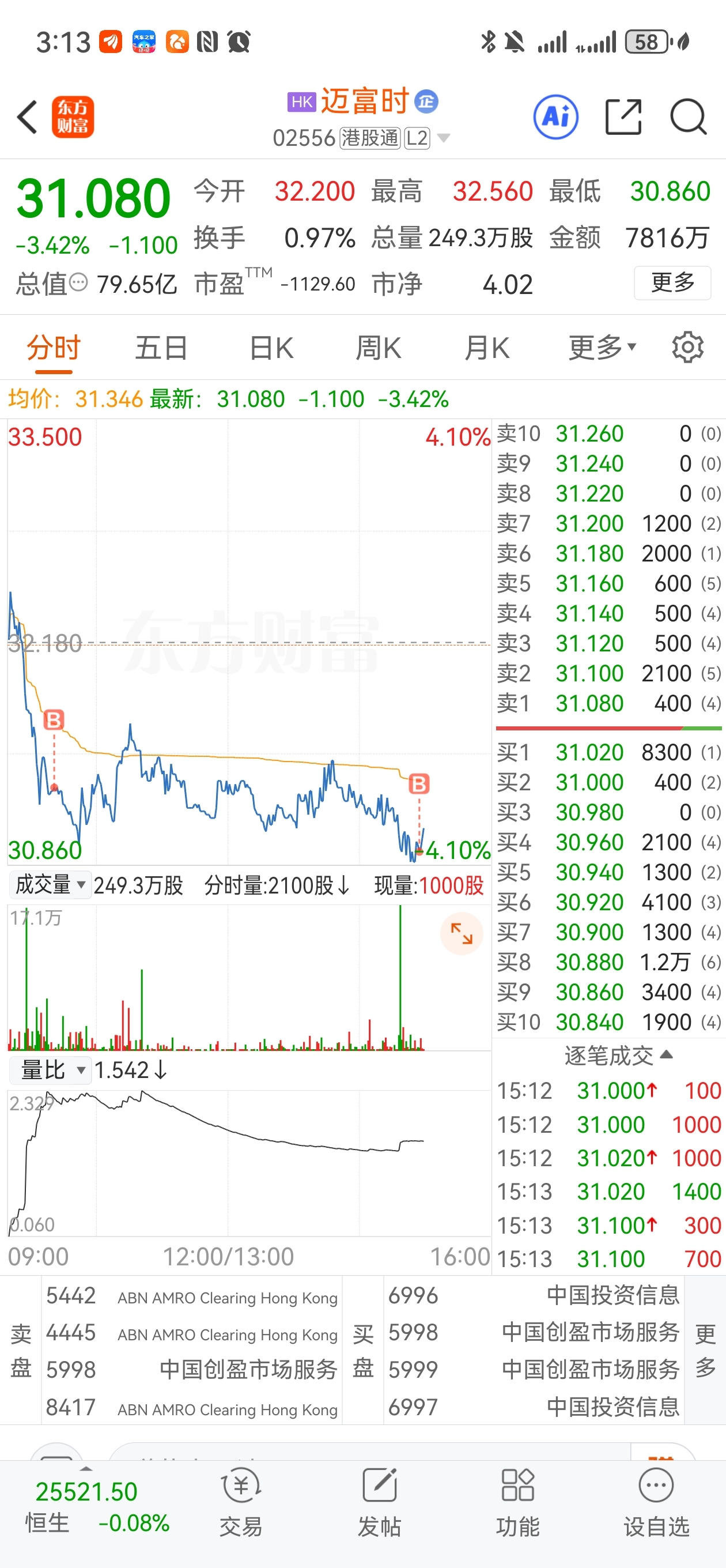 $迈富时(HK|02556)$ 感谢低位割肉的兄弟,四分之一仓位了,成本降到32.14,希望还能跌跌给我再加,接下来31以下继续