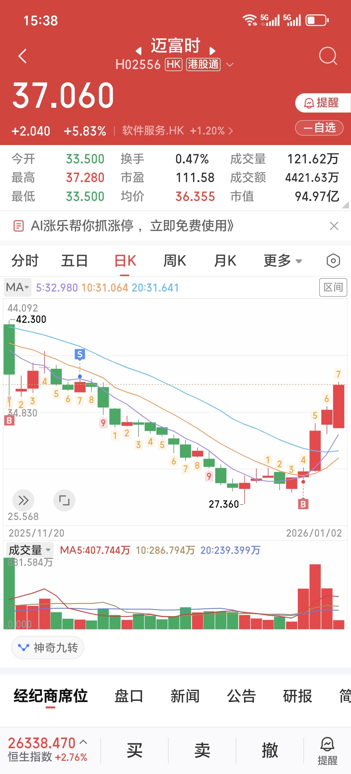$迈富时(HK|02556)$ 29块进的,现在37.06,等待50出