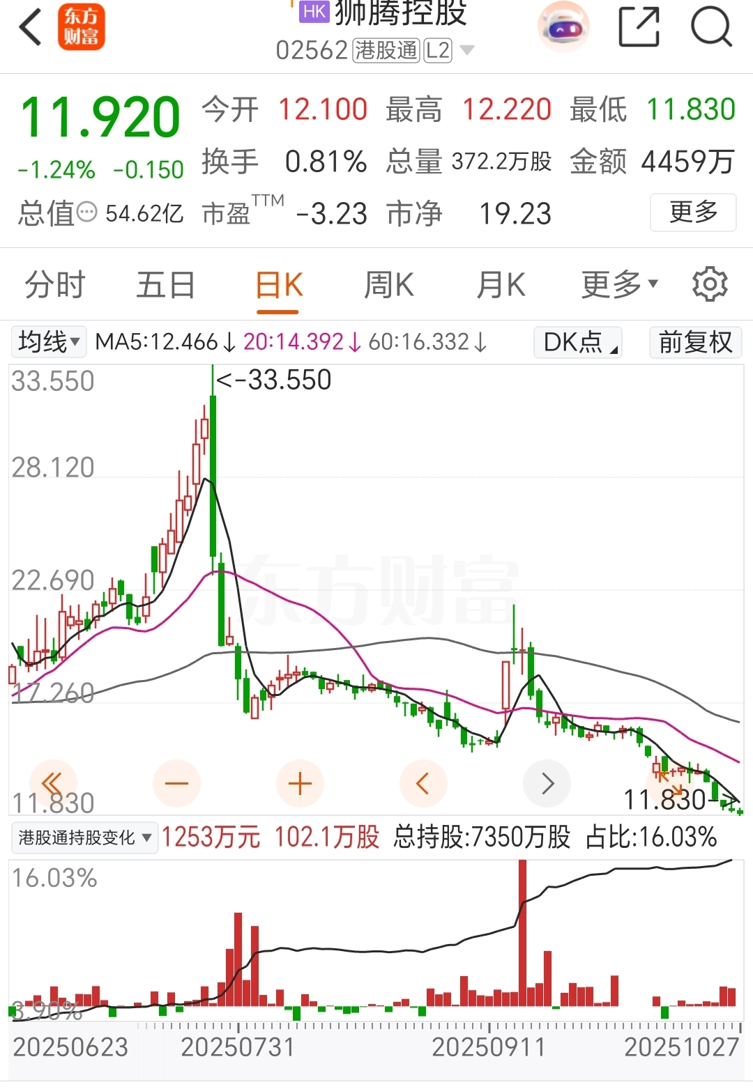 $狮腾控股(HK|02562)$ 大股东卖的不要太香,越是跌,买的人越多越好出货。何必拉起来放人跑。
