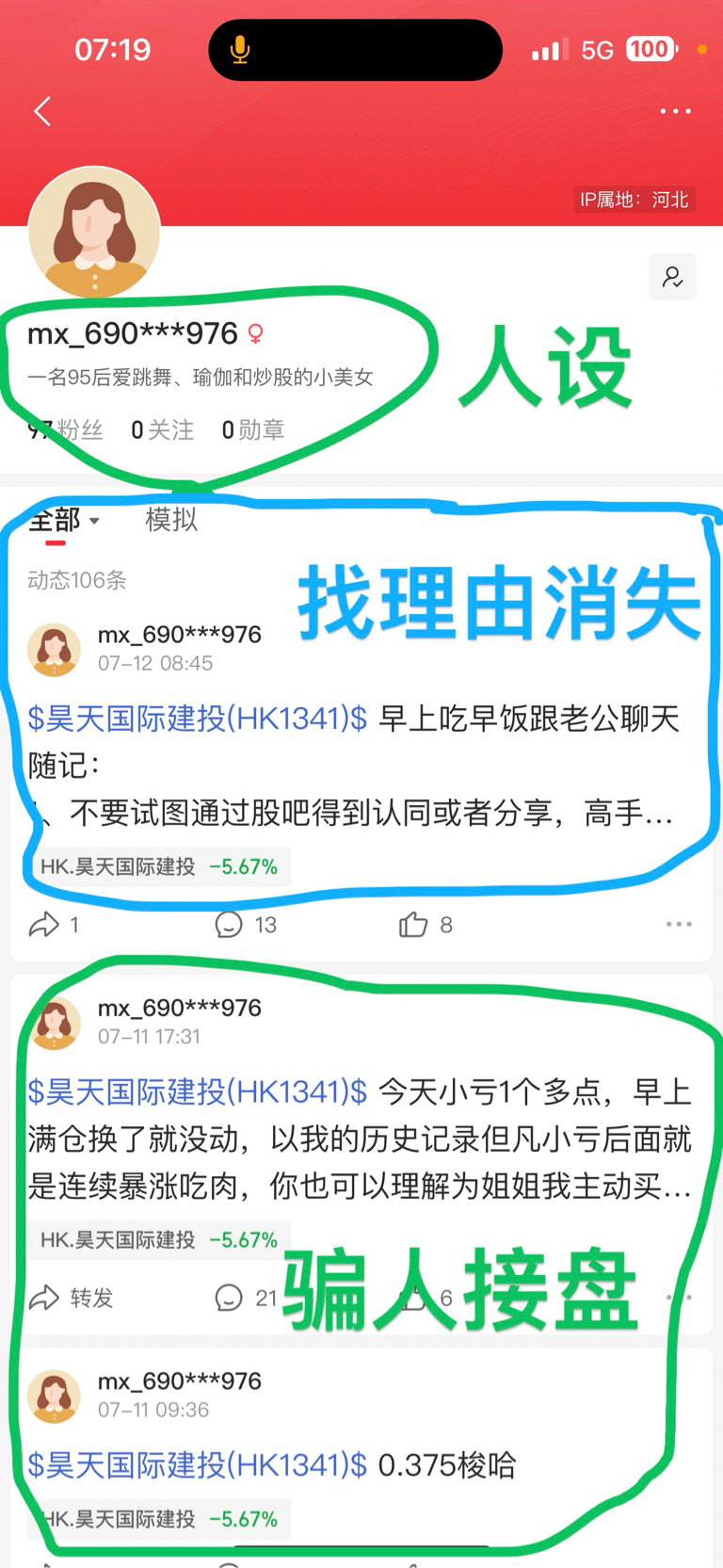 分享一个起号立良人设骗大家高位接盘老千股的案例