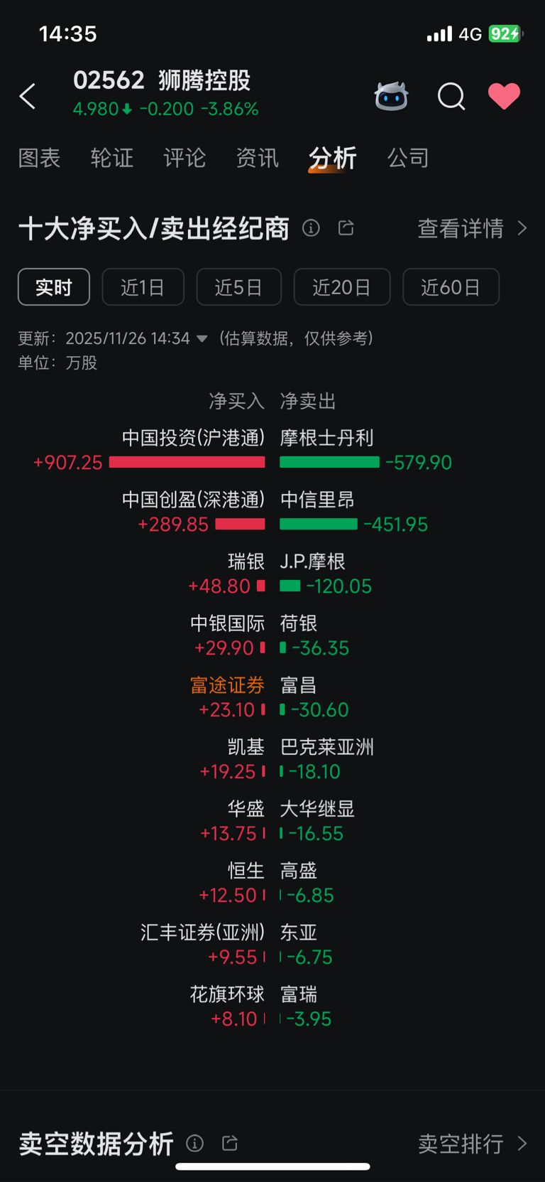 $狮腾控股(HK|02562)$ 存仓摩根斯坦利的开始出货了?