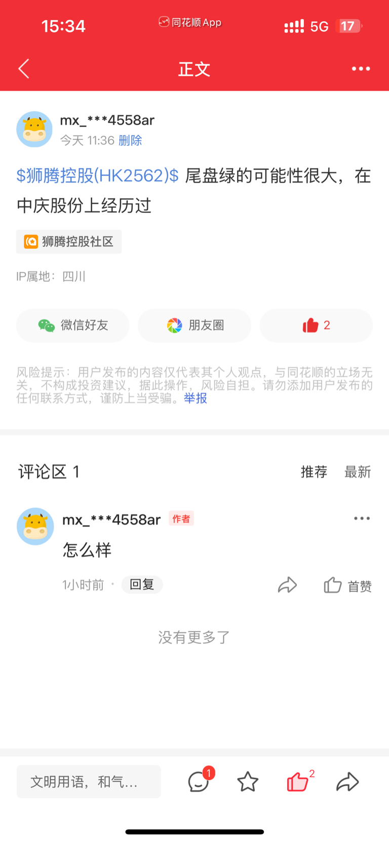 温馨提示: 1.根据《证券法》规定,禁止编造、传播虚假信息或者误导性信息,扰乱证券市场;2.用户在本社区发表的所有资料、言论等仅代表个人观点,与本网站立场无关,不对您构成任何投资建议。用户应基于自己的独立判断,自行决定证券投资并承担相应风险。《东方财富社区管理规定》