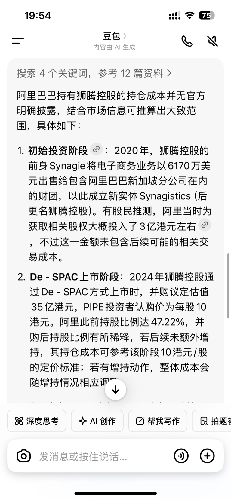 理智分析,阿里巴巴6170万美元获得的狮腾32%的股份,折合持仓成本是3元左右,