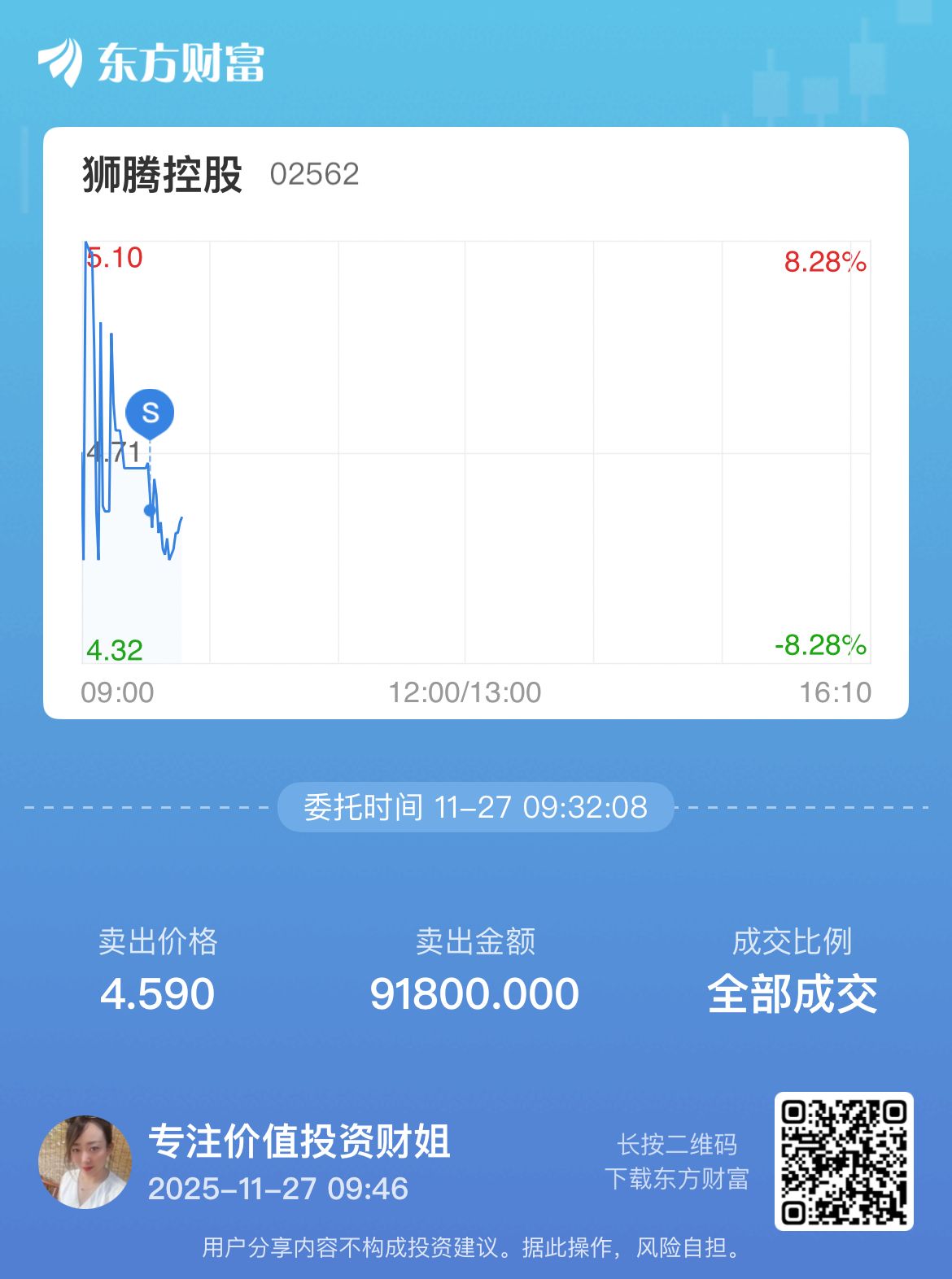 $狮腾控股(HK|02562)$ 又成金韭菜了。。。