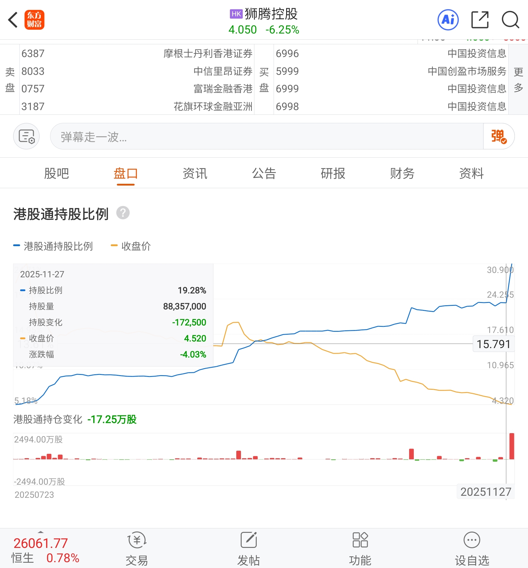 $狮腾控股(HK|02562)$ 财鸡忽悠的港股通韭菜短短两个交易日从19%接盘到31%,割的真猛,机构和财鸡配合的真好