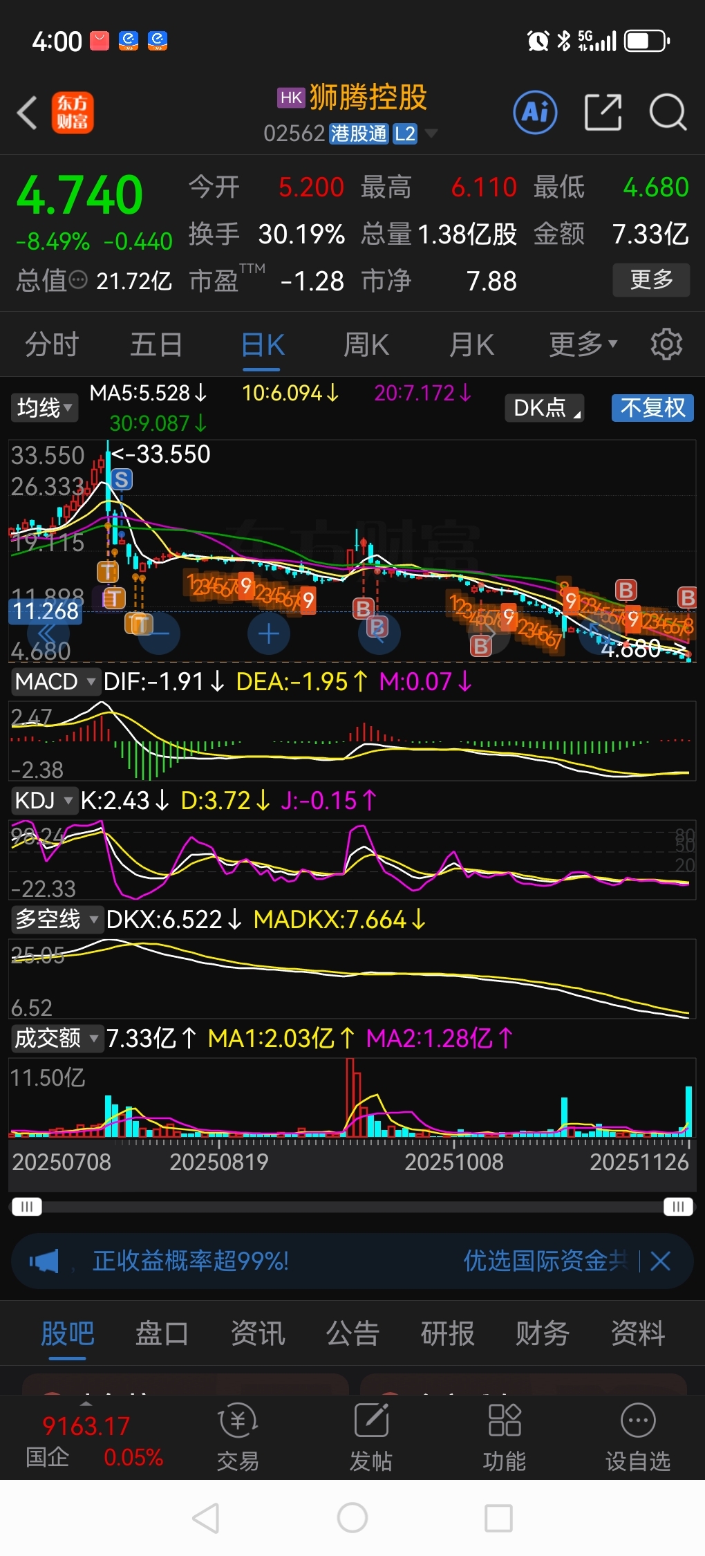 $狮腾控股(HK|02562)$ 亏了七十万了