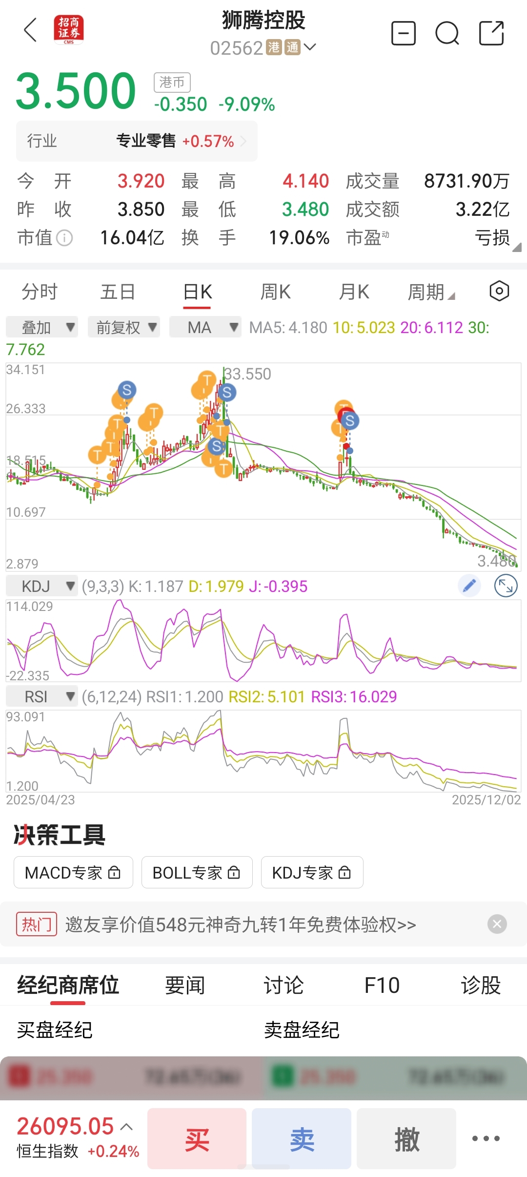 $狮腾控股(HK|02562)$ 还在的兄弟们一定要坚强。这个票做了3个月,一直在自选里,每天收盘看都是心有余悸的,提醒自己不能抄底,不能有幻想。