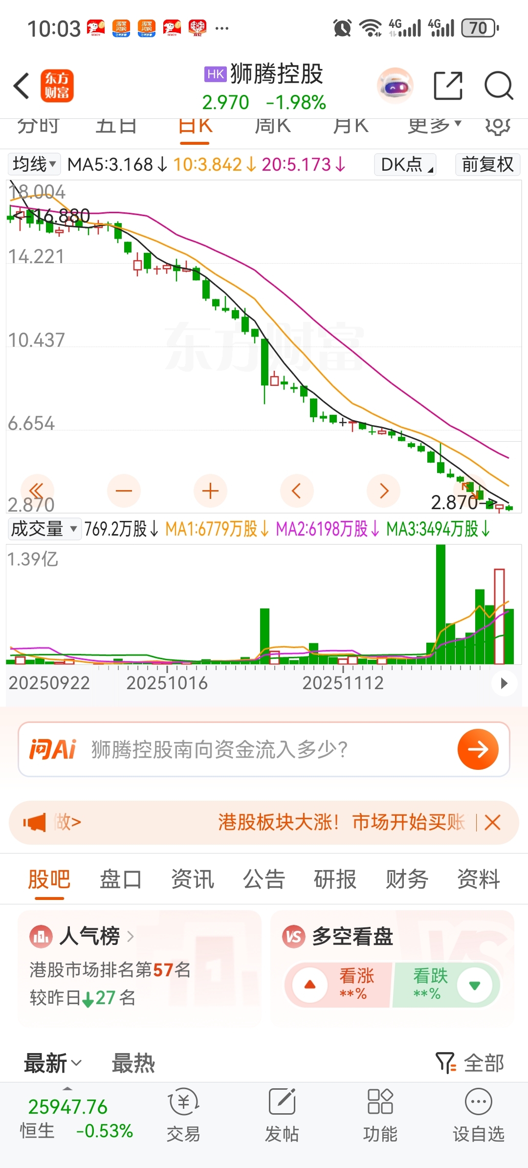 $狮腾控股(HK|02562)$ 有种拳头打在棉花上的感觉,看看成交易,不要做翻倍美梦了,不腰折就万幸了。$山高控股(HK|00412)$