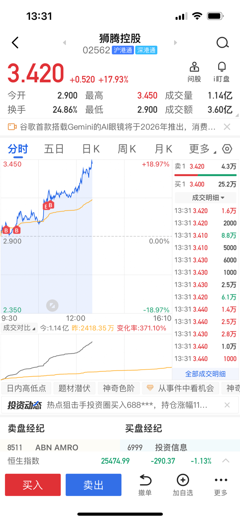 $狮腾控股(HK|02562)$ $山高控股(HK|00412)$ 狮腾又启动了,三高你不动?