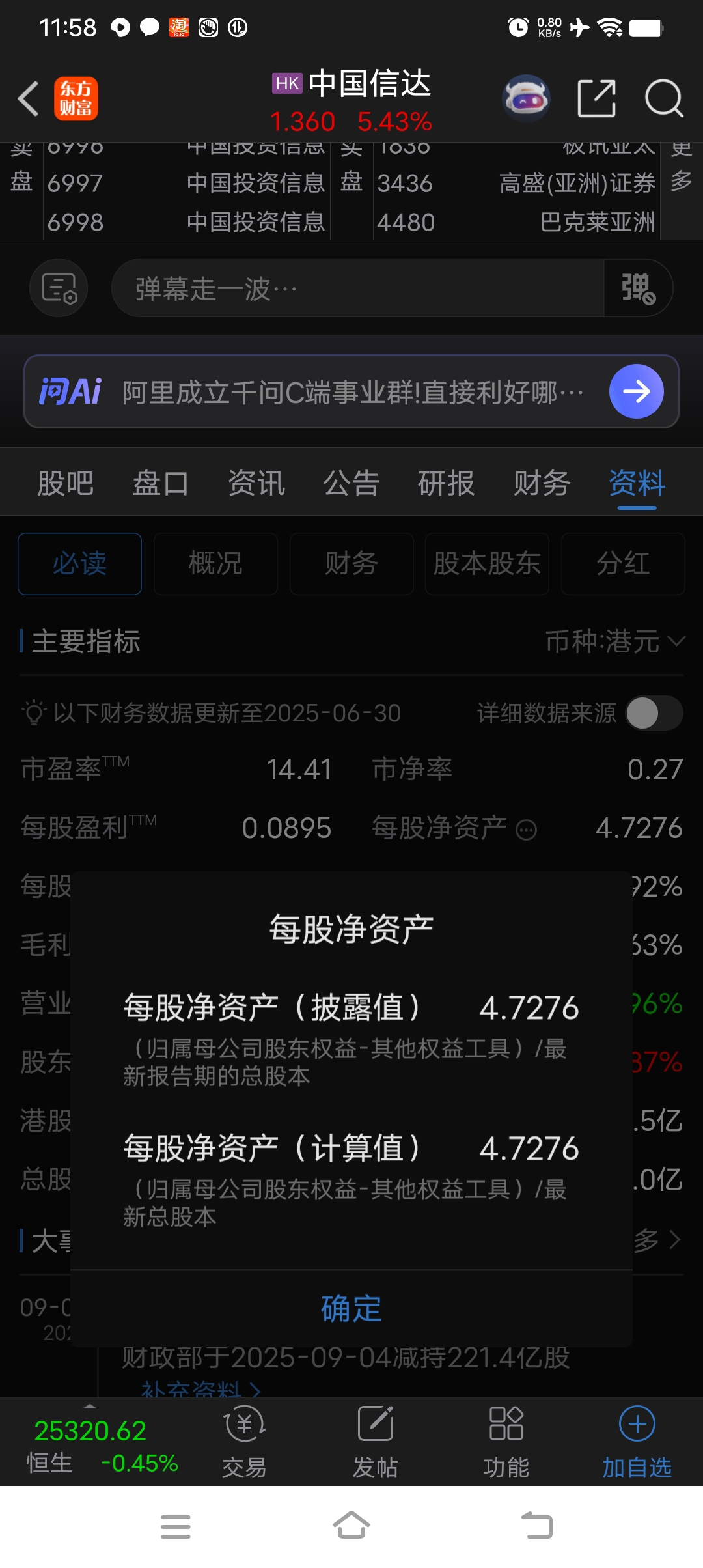 1.36/4.7276=0.2877倍市净率
