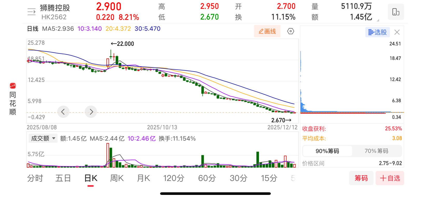 $狮腾控股(HK|02562)$ 筹码高度集中,大妖股。可以小仓位博一下。