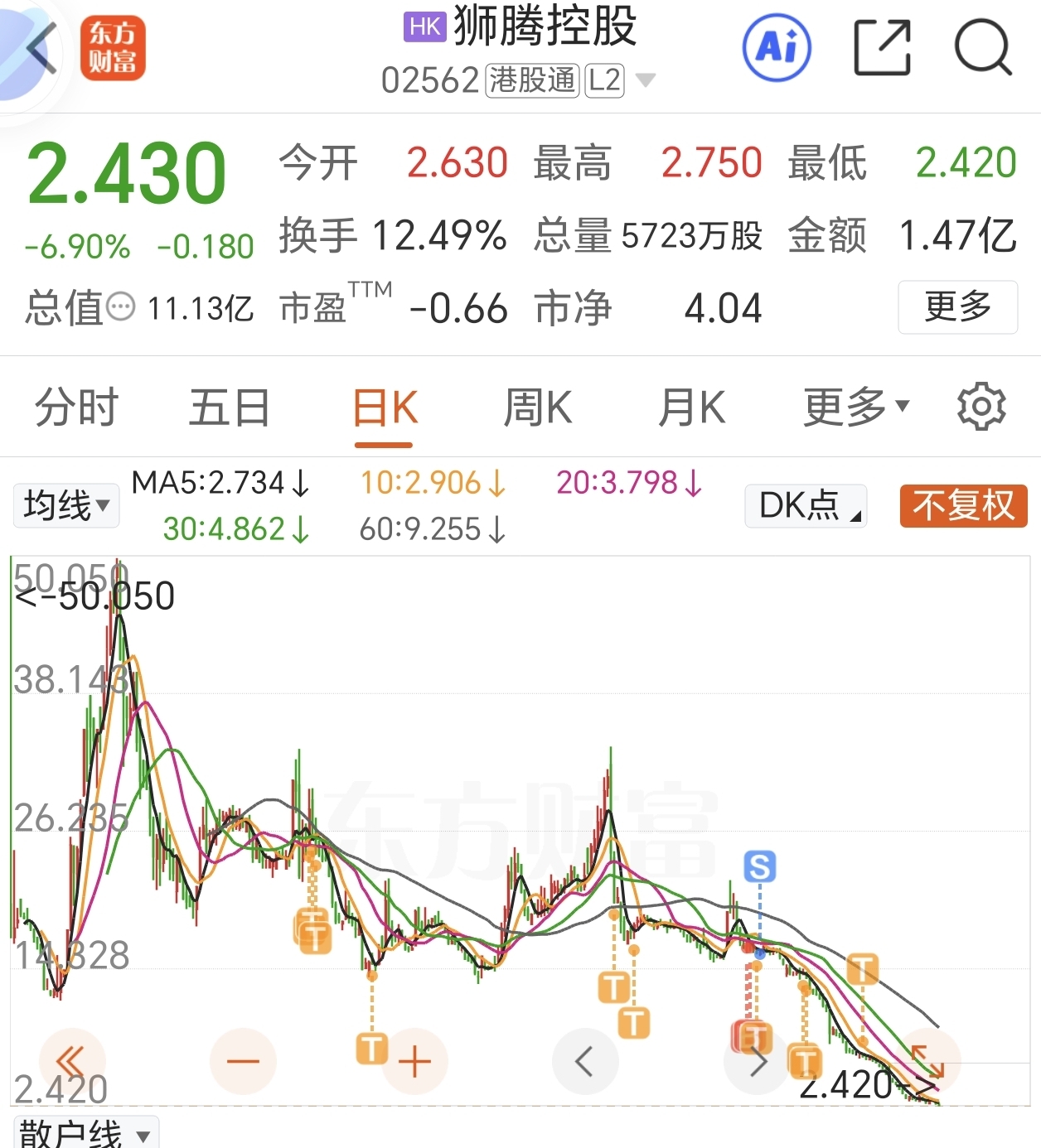 $狮腾控股(HK|02562)$ 这种票一定要快进快出,严格执行纪律,情况不对要迅速做决断,才有可能全身而退。