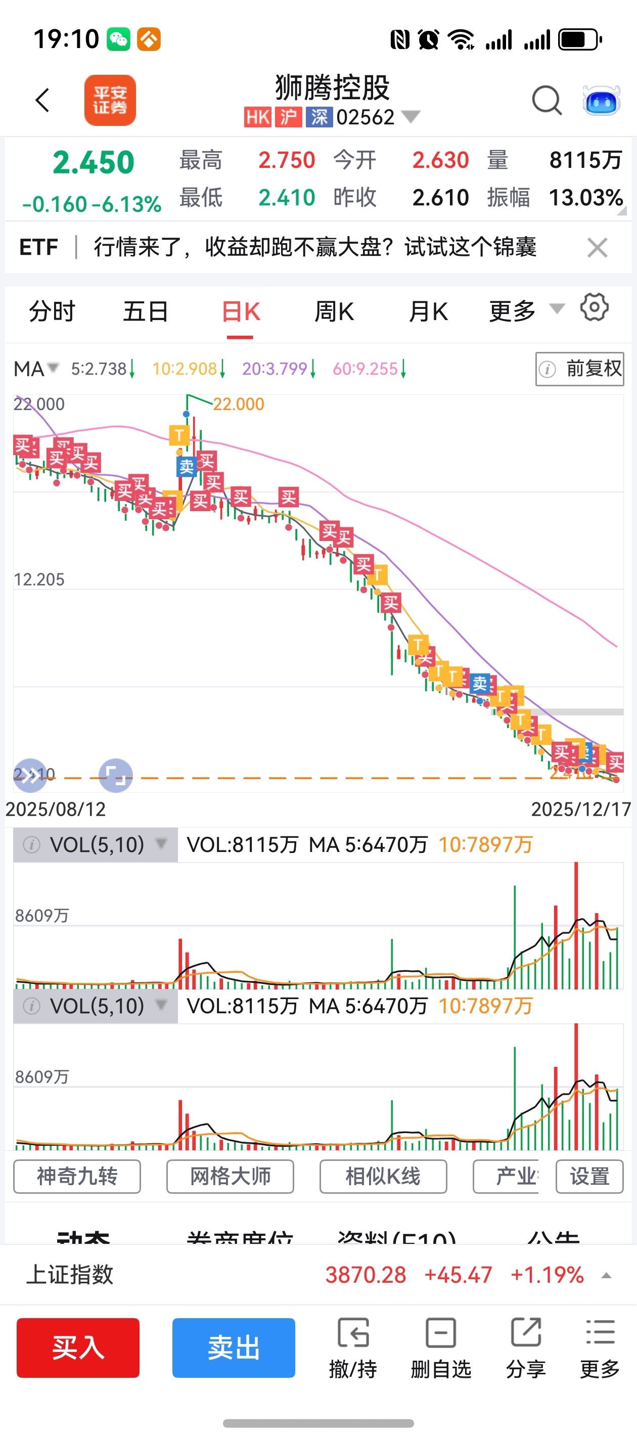 $狮腾控股(HK|02562)$ 这个狮腾害死人,亏掉70多W,买入就是错误,现在回想,什么时候卖都是好时候。