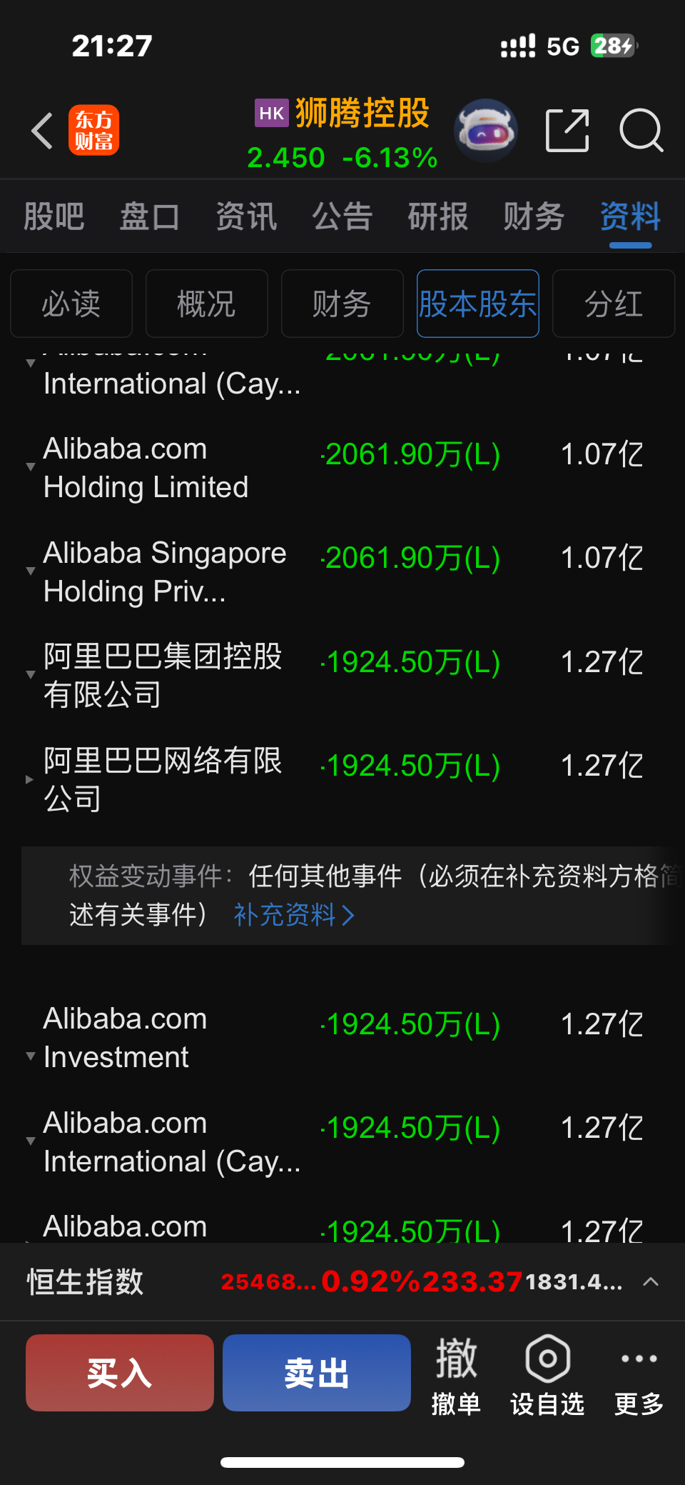$狮腾控股(HK|02562)$ 阿里没有减持多少,显示减持的用来开淡仓了,实际减持了8百多万股