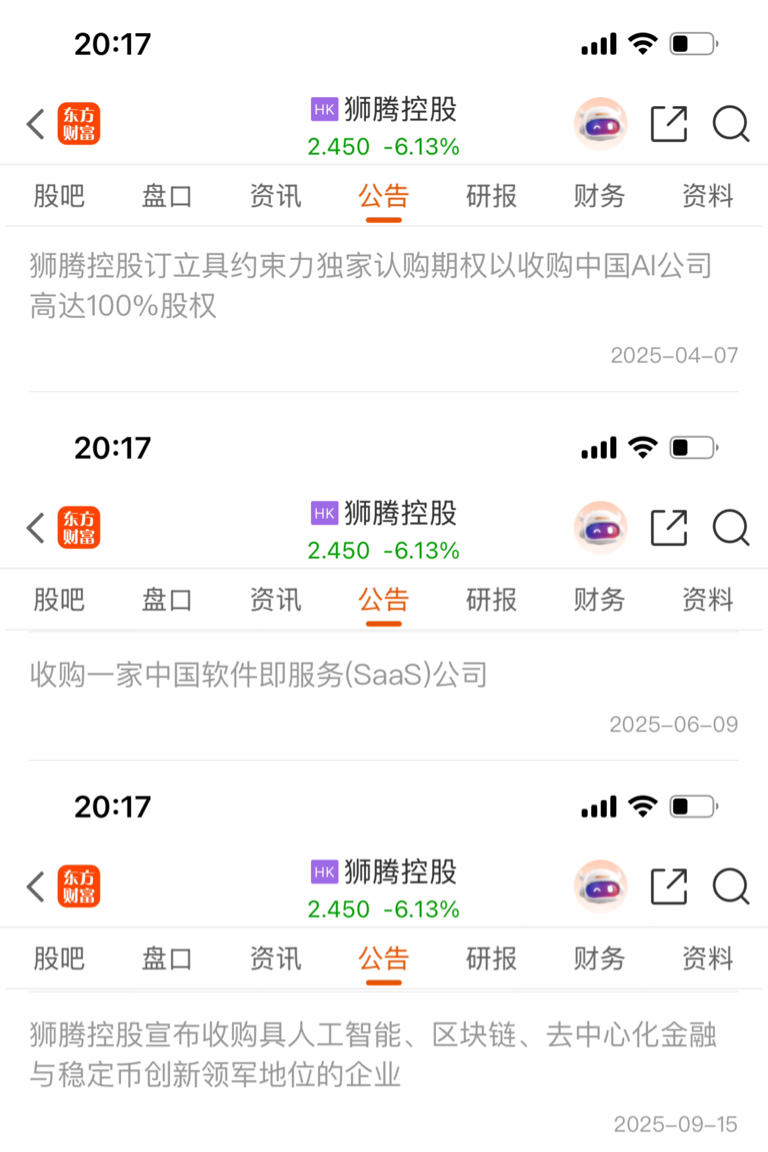 $狮腾控股(HK|02562)$ 三个收购都没下文,收购期间股价被股东们联合砸下来~ 这都没人管~邪门