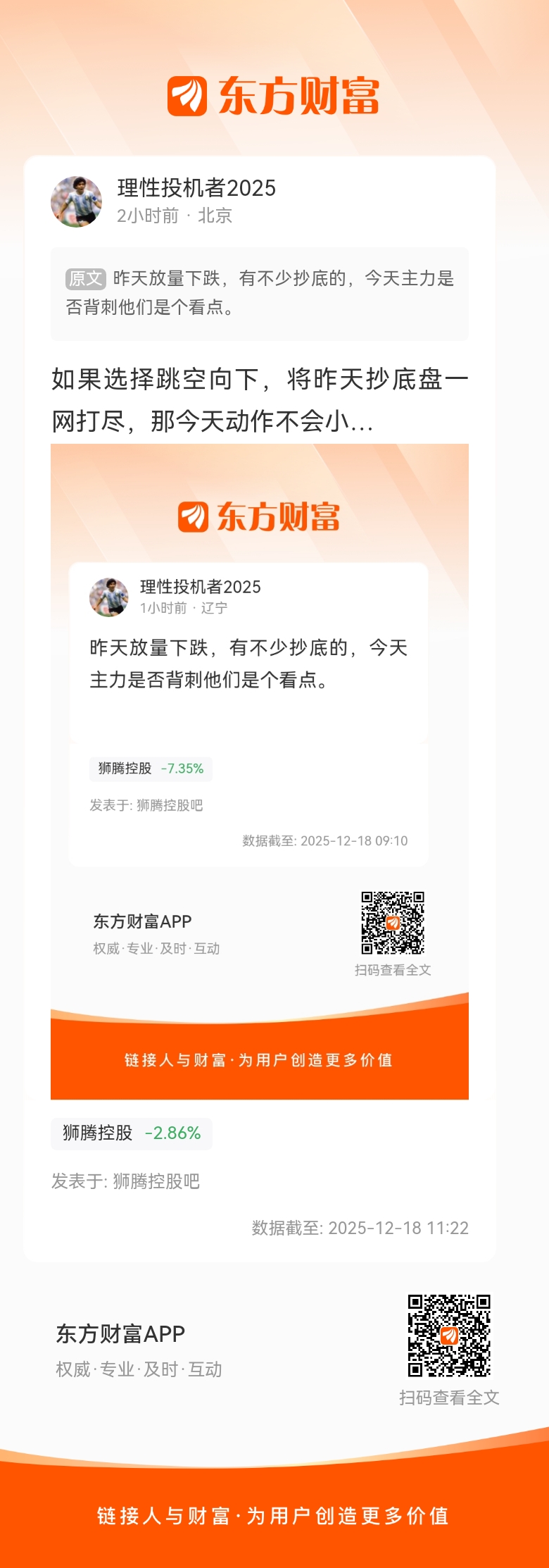 温馨提示: 1.根据《证券法》规定,禁止编造、传播虚假信息或者误导性信息,扰乱证券市场;2.用户在本社区发表的所有资料、言论等仅代表个人观点,与本网站立场无关,不对您构成任何投资建议。用户应基于自己的独立判断,自行决定证券投资并承担相应风险。《东方财富社区管理规定》