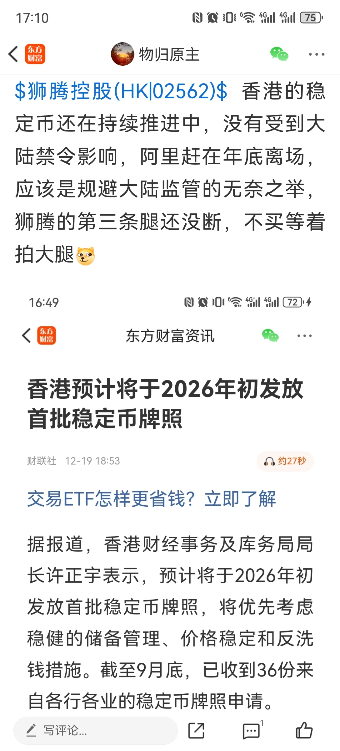 $狮腾控股(HK|02562)$ 原帖发不出去,凑合看吧,阿里身为大陆主体,理论上不能直接参与任何稳定币项目,因此在狮腾不能作为第一大股东出现,任何比例的减持都合情合理