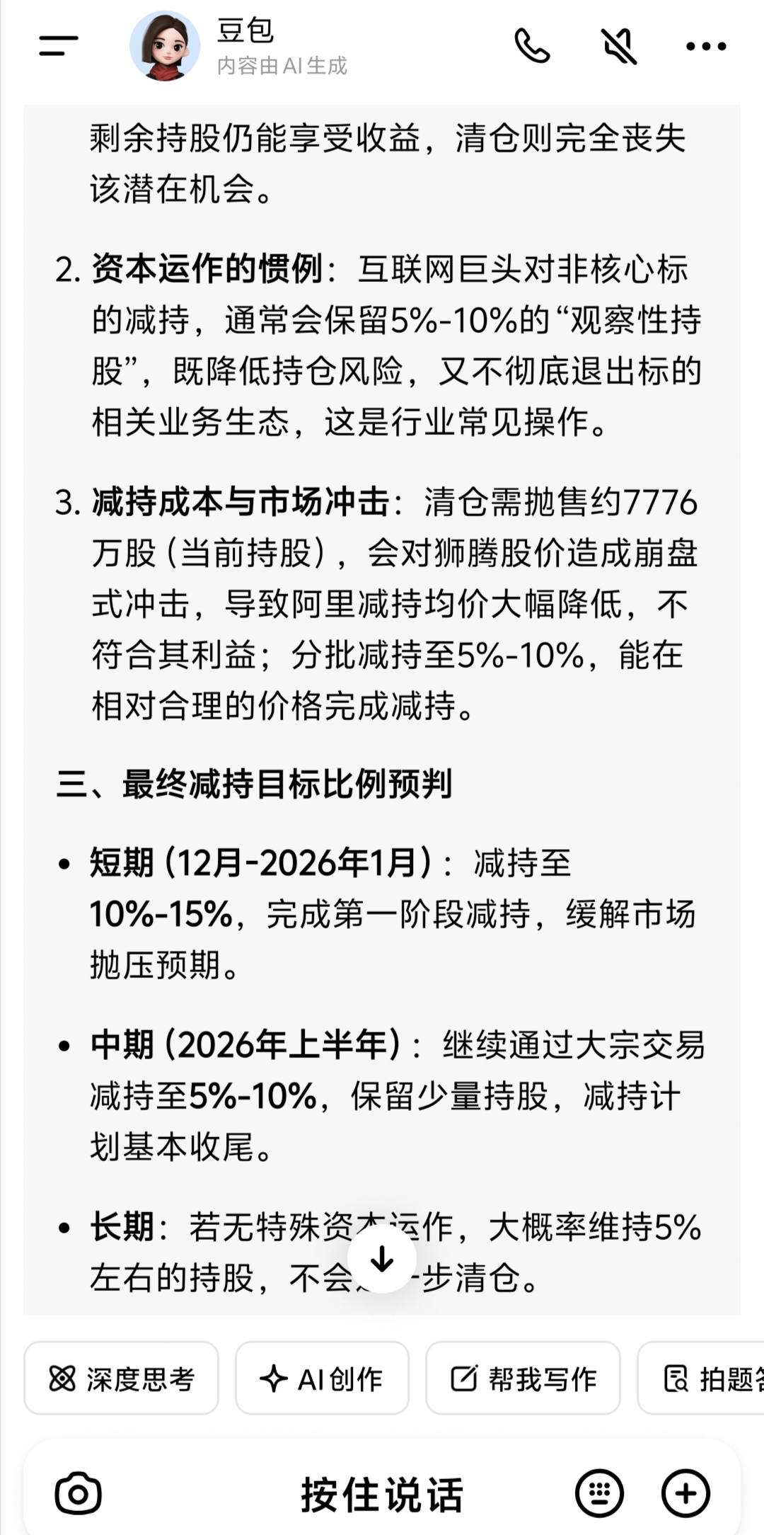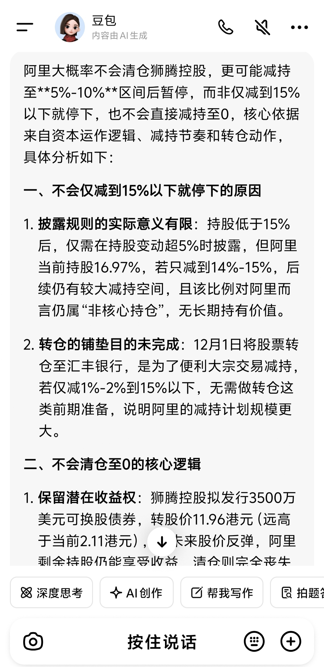 我不认为阿里会清仓狮腾,近期还是有机会博一波反弹的,已经持股的不要着急割肉。这是