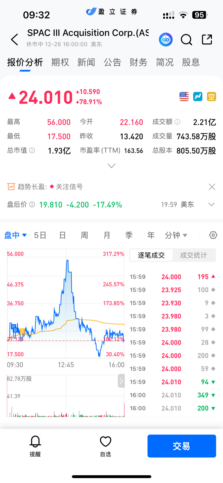 $狮腾控股(HK|02562)$ 有时候玩港美股的小盘妖股真的需要克服贪婪与恐惧!昨天晚上买的美股妖股,25买的,不到30就卖了,结果震荡完以后最高冲了3倍涨幅到50多了!港股也好美股也好,都是跌半年,主力自救一天回本的走势!不限涨跌幅,放大了人性的贪婪与恐惧!