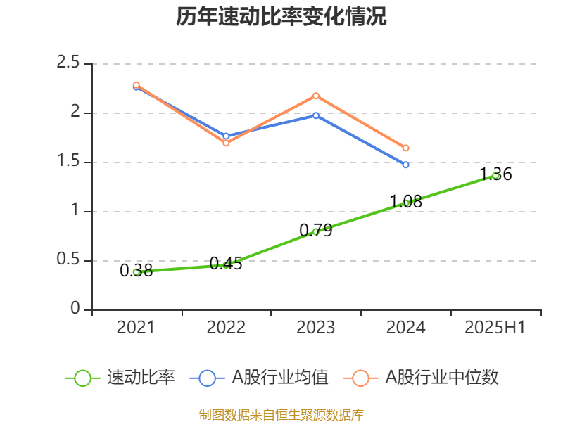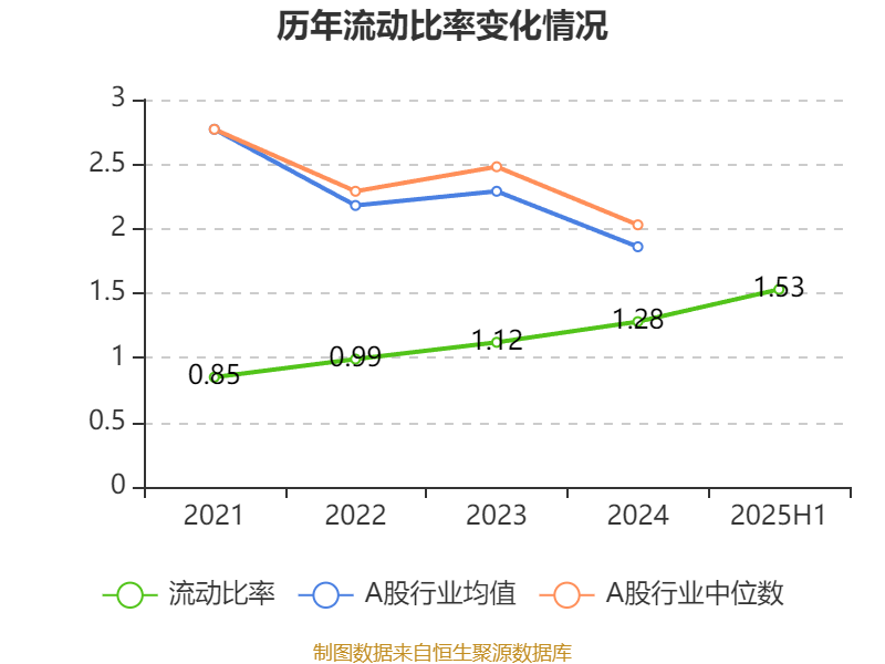 2025年上半年,公司流动比率为1.53,速动比率为1.36。