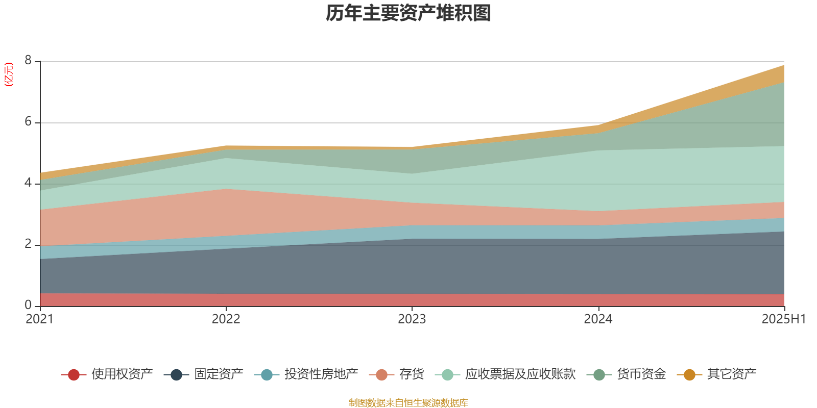 资产重大变化方面,截至2025年上半年,公司货币资金较上期末增加272.33%,占公司总资产比重上升17.02个百分点;应收票据及应收账款较上期末减少8.05%,占公司总资产比重下降10.42个百分点;固定资产较上期末增加13.82%,占公司总资产比重下降4.47个百分点;交易性金融资产较上期末增加1299.85%,占公司总资产比重上升2.09个百分点。