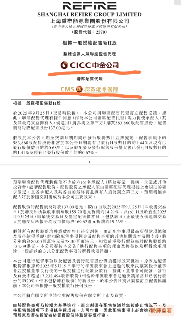 $重塑能源(HK|02570)$ $氢能源(HKBLOCK|HK1210)$ 这两个大佬配售的,含金量还是高的。