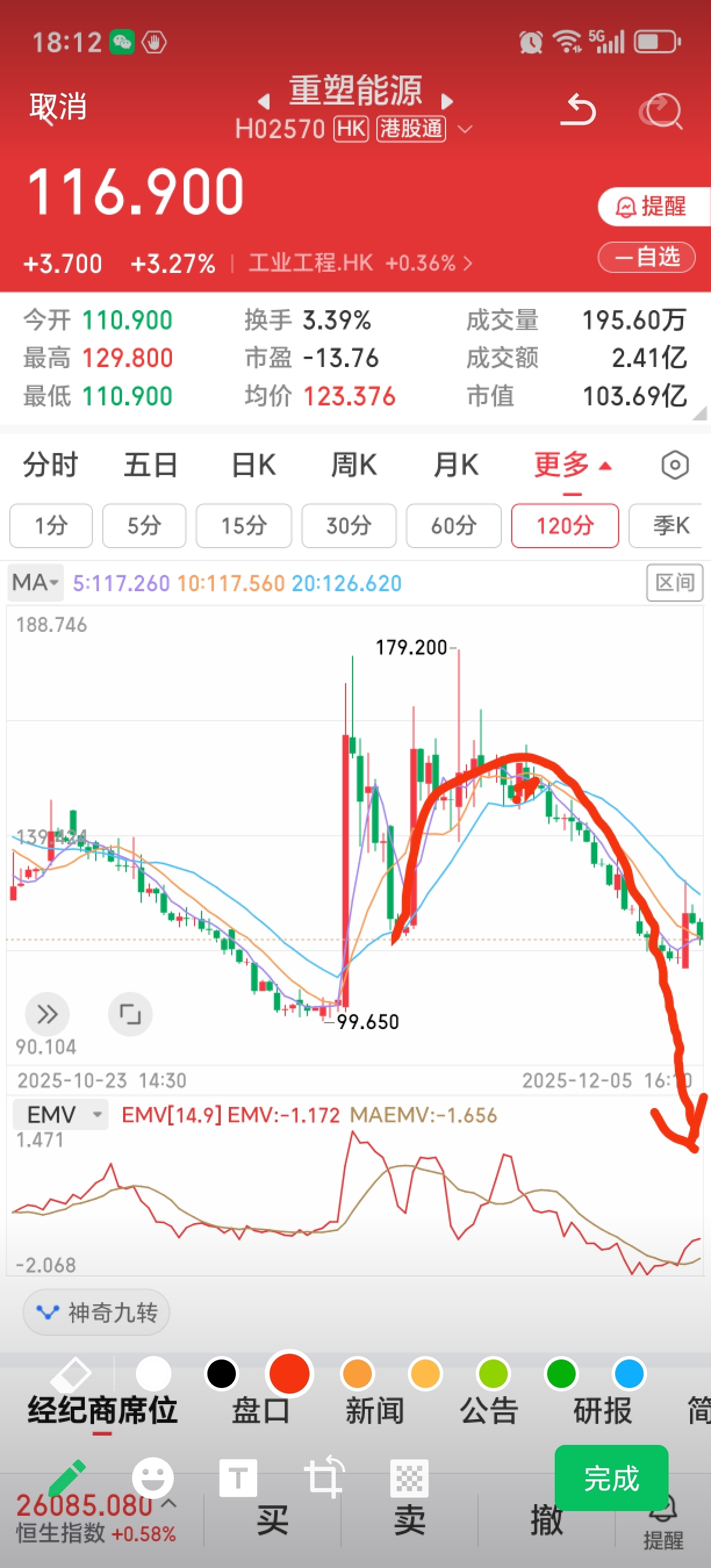 $重塑能源(HK|02570)$ 勾股。不到70不会到底,明天破80.