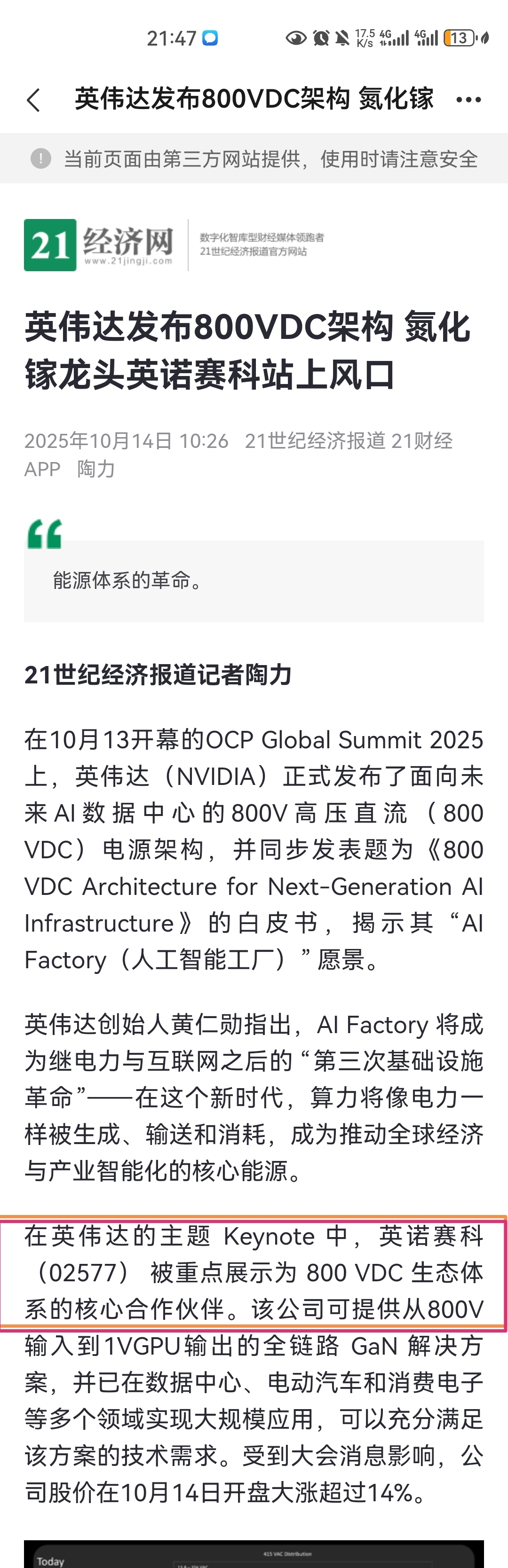 $英诺赛科(HK|02577)$ 第一张图片提到的keynote英诺被重点展示,没找到原图和出处。第二张是原视频截图,这个供应商名单是按照字母顺序排的。