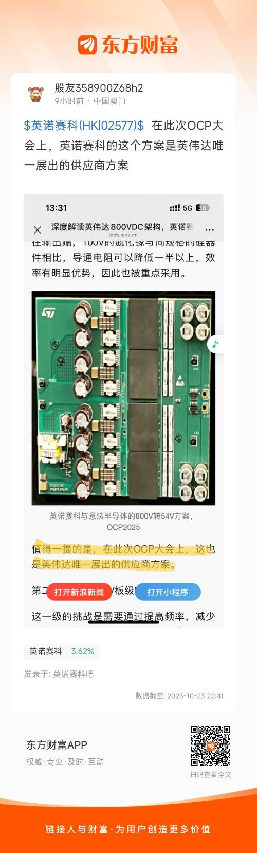 $英诺赛科(HK|02577)$  在此次OCP大会上,英诺赛科的这个方案是英伟达唯一展出的供应商方案