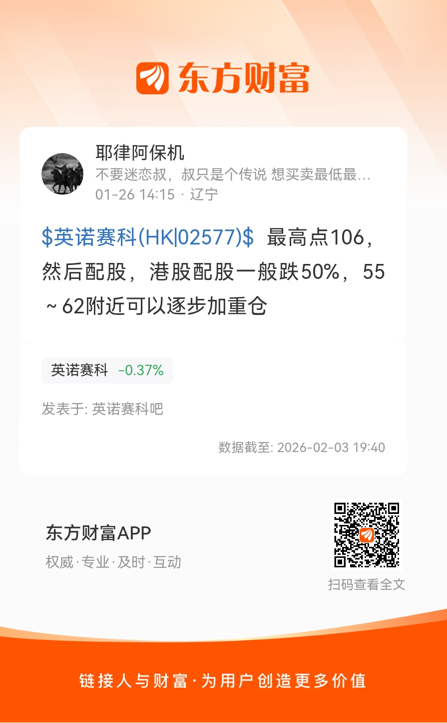 $英诺赛科(HK|02577)$  最高点106,然后配股,港股配股一般跌50%,55~62附近可以逐步加重仓