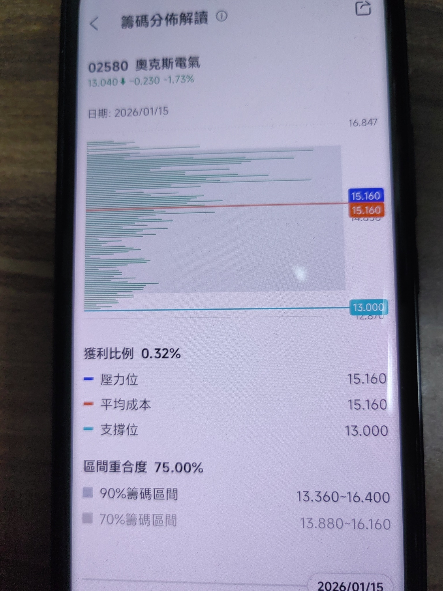 $奥克斯电气(HK|02580)$ 获利盘只有0.32%