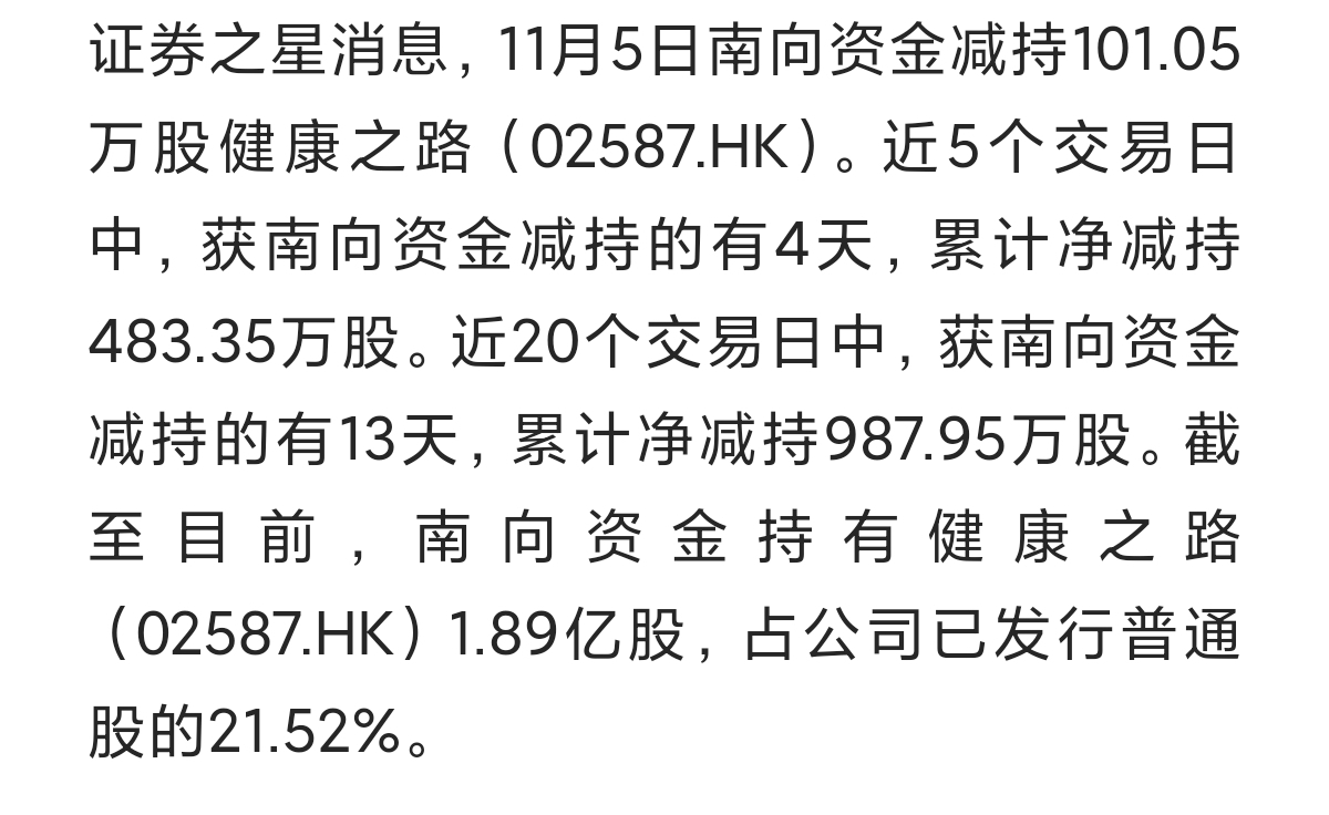 $健康之路(HK|02587)$ 天天减持不跌才怪20个交易日13天减持