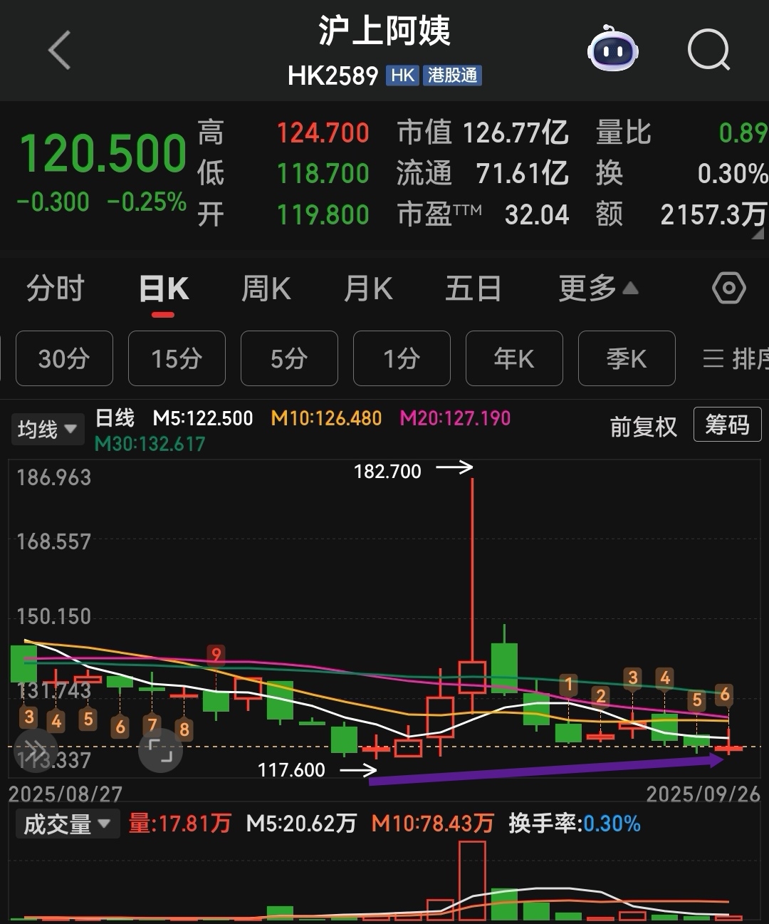 $沪上阿姨(HK|02589)$ 低位十字星,似曾相识。如有雷同,纯属巧合恭喜入场票友,下周大概率在吸筹几天,厚积薄发,静待花开